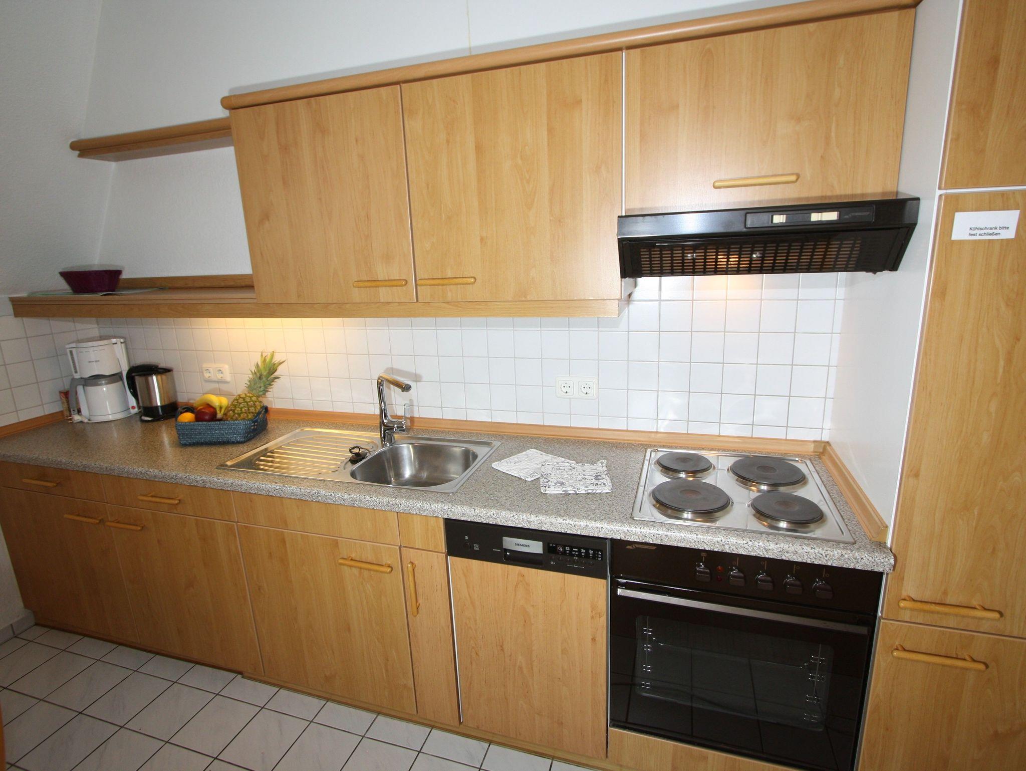 In der langen Küchenzeile finden Sie viel Stauraum, Mikrowelle, Spülmaschine, 4-Platten-Herd, Backofen, Kühlschrank mit Gefrierfach und natürlich ausreichend Geschirr. Die Ausstattung vervollständigen Kaffeemaschine, Wasserkocher, Toaster, Eierkocher, etc.