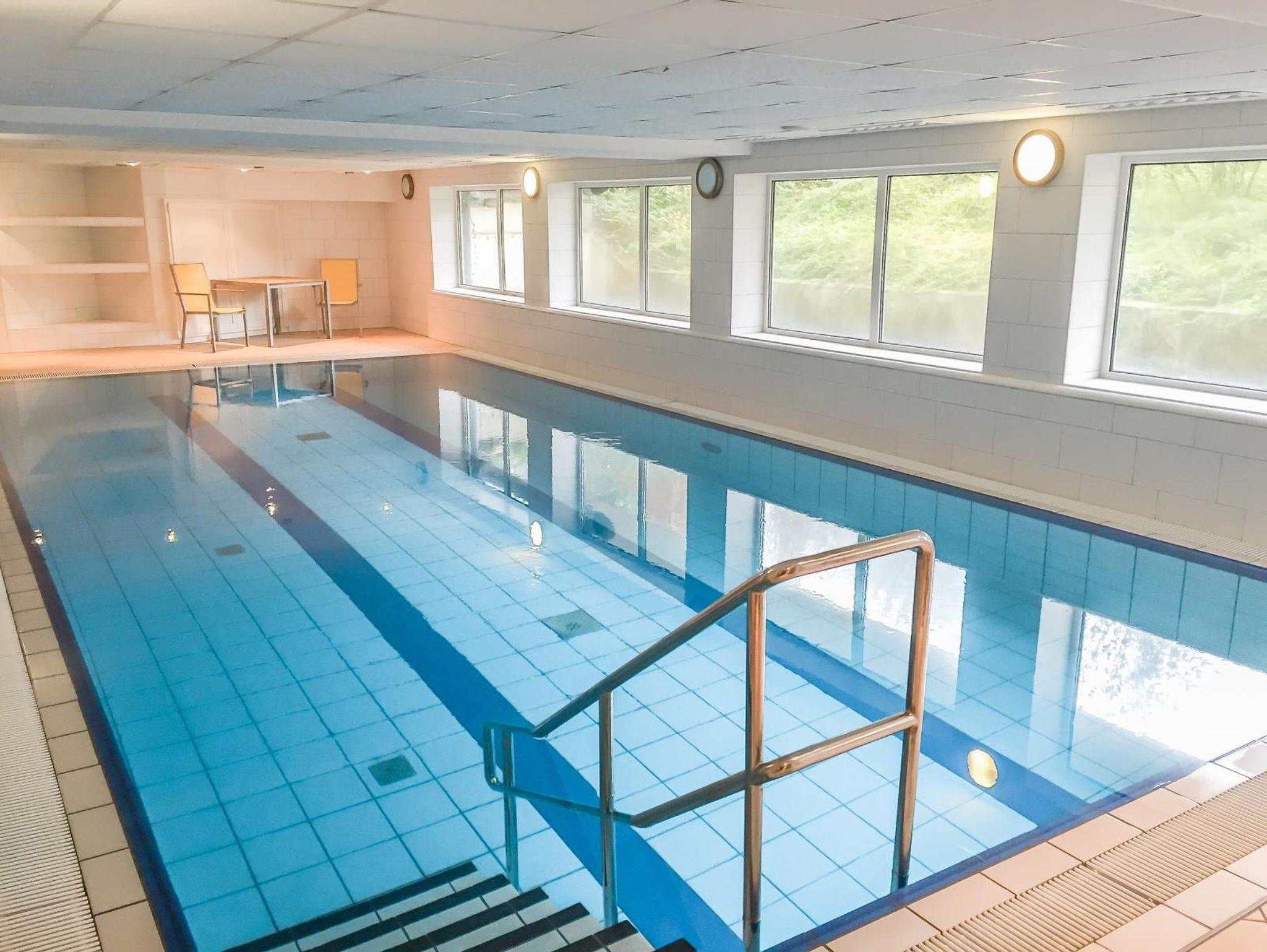 Freizeitangebote: Kinderspielplatz, Hallenschwimmbad mit Gegenstromanlage und finnische Sauna inklusive.