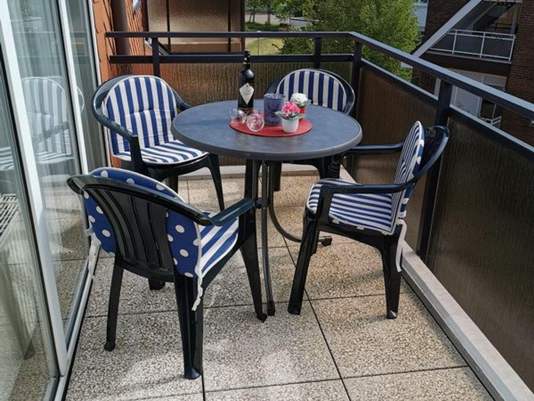 Vom Wohnraum aus haben Sie Zugang zum Balkon, wo der Tag mit einem Frühstück in der Sonne beginnen kann und spätnachmittags mit Sonne bei einer Tasse Kaffee oder einem Glas Wein ausklingt.