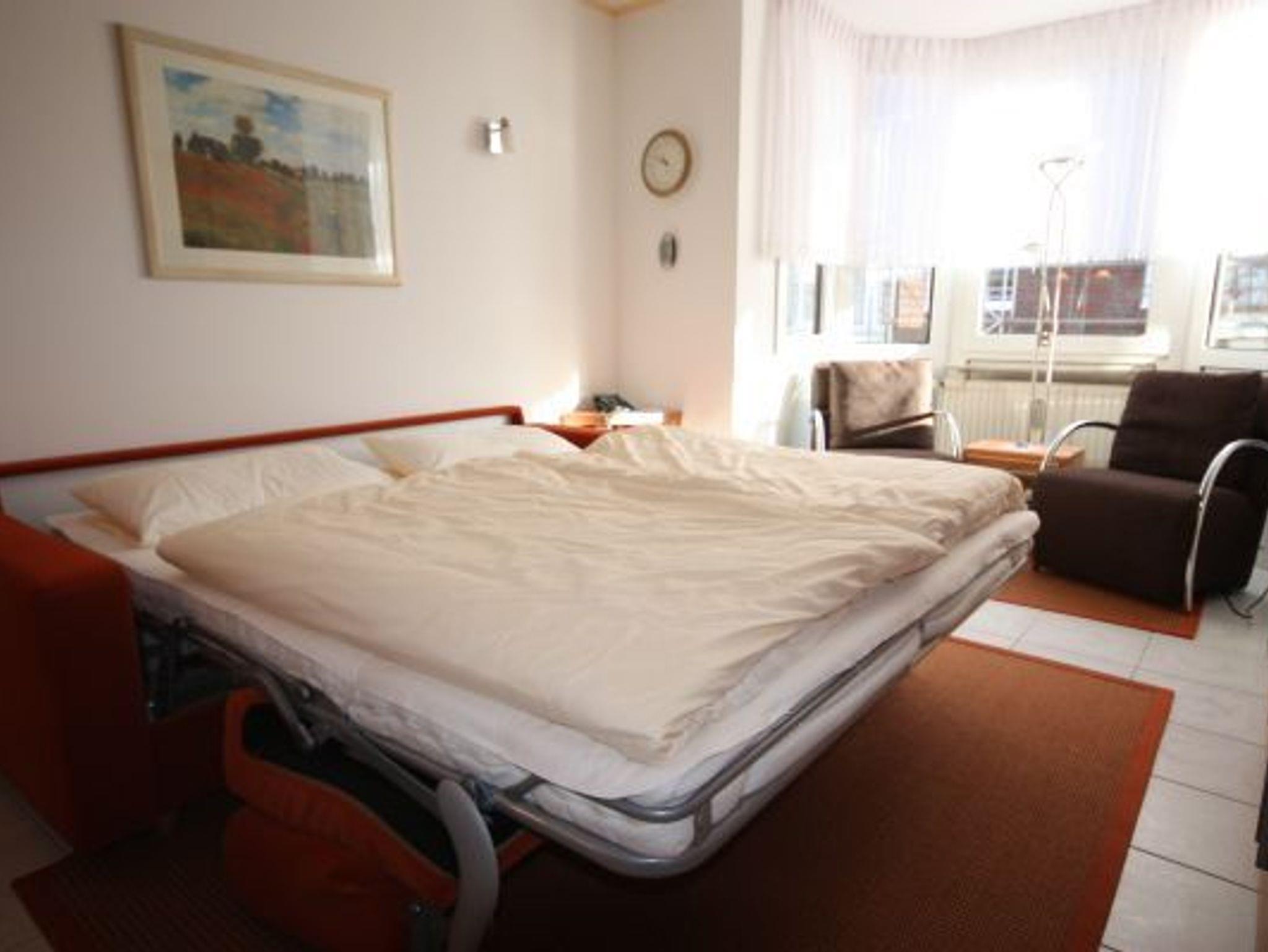 2-Zimmer-Appartement für bis zu 4 Personen auf ca. 40-45 m². Schlafzimmer mit Balkon und Doppelbett, Wohn-Schlafraum mit Balkon und bequemer Doppelbettcouch, TV, separatem Essplatz im Erker und voll ausgestattetem Küchenbereich. Bad mit Dusche/WC. WLAN und PKW-Stellplatz vorhanden.