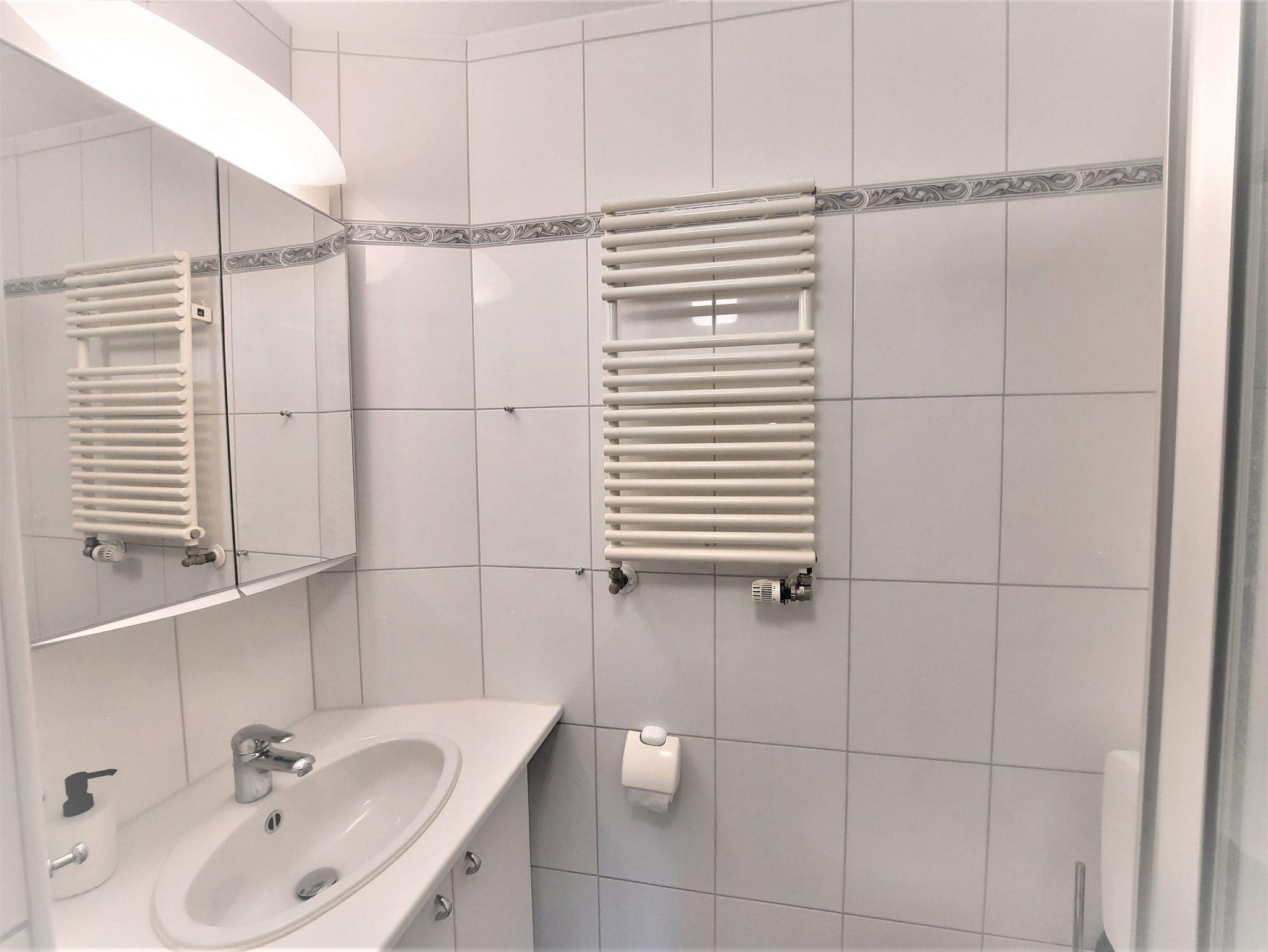 Ihr Wohlbefinden ist uns wichtig, daher wurde das Appartement 2023 komplett renoviert und eingerichtet. Das moderne Duschbad mit WC sorgt für erfrischende Momente. Genießen Sie auch entspannte Stunden auf der verglasten Loggia, deren Fenster sich zum Frischlüften aufschieben lassen.