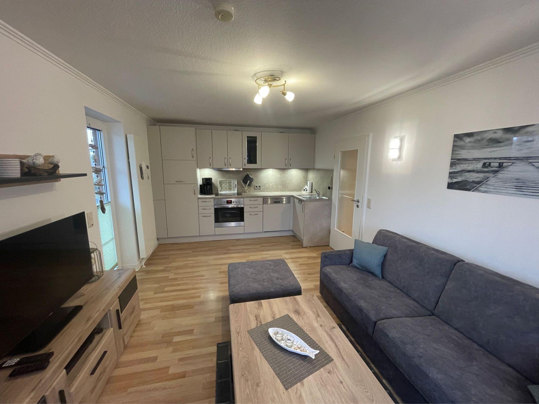 Sie wohnen in einem modernen 2-Zimmer-Appartement für bis zu 4 Personen auf ca. 45 m² in der 2. Etage. Der Wohn-/Schlafraum hat einen Zugang zum Süd-Balkon und ist mit bequemer Doppelbettcouch, Flachbild-TV, 3D-Blu-ray-Player und separatem Essplatz im Erker ausgestattet. Der voll ausgestattete Küchenbereich mit Mikrowelle, Geschirrspüler und Backofen bietet viel Platz für Hobbyköche. Im separaten Schlafzimmer befindet sich ein Doppelbett und ein Kleiderschrank, Flachbild-TV und ein Zugang zum Ost-Balkon. Das Bad mit Dusche/WC (Regendusche) und Handtuchheizkörper ist vom Flur zu erreichen. Außerdem steht ein kostenfreier WLAN Anschluss zur Verfügung. Der PKW-Stellplatz befindet sich in der Tiefgarage (Breite 2,50 m).