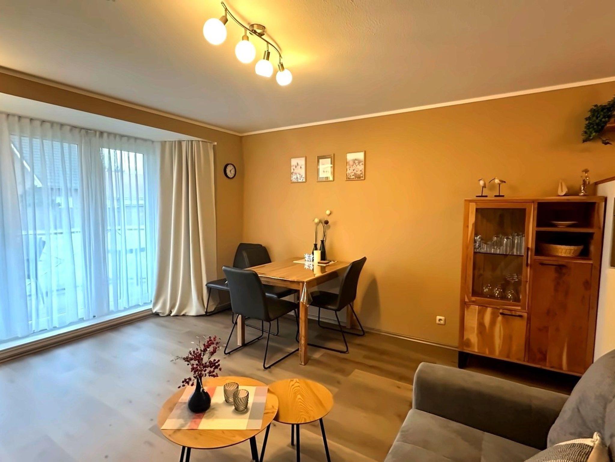 Sie wohnen in einer gemütlichen 3-Zimmer Ferienwohnung mit möblierter und überdachter Süd-Terrasse für bis zu 4 Personen auf ca. 52 m² Wohnfläche.