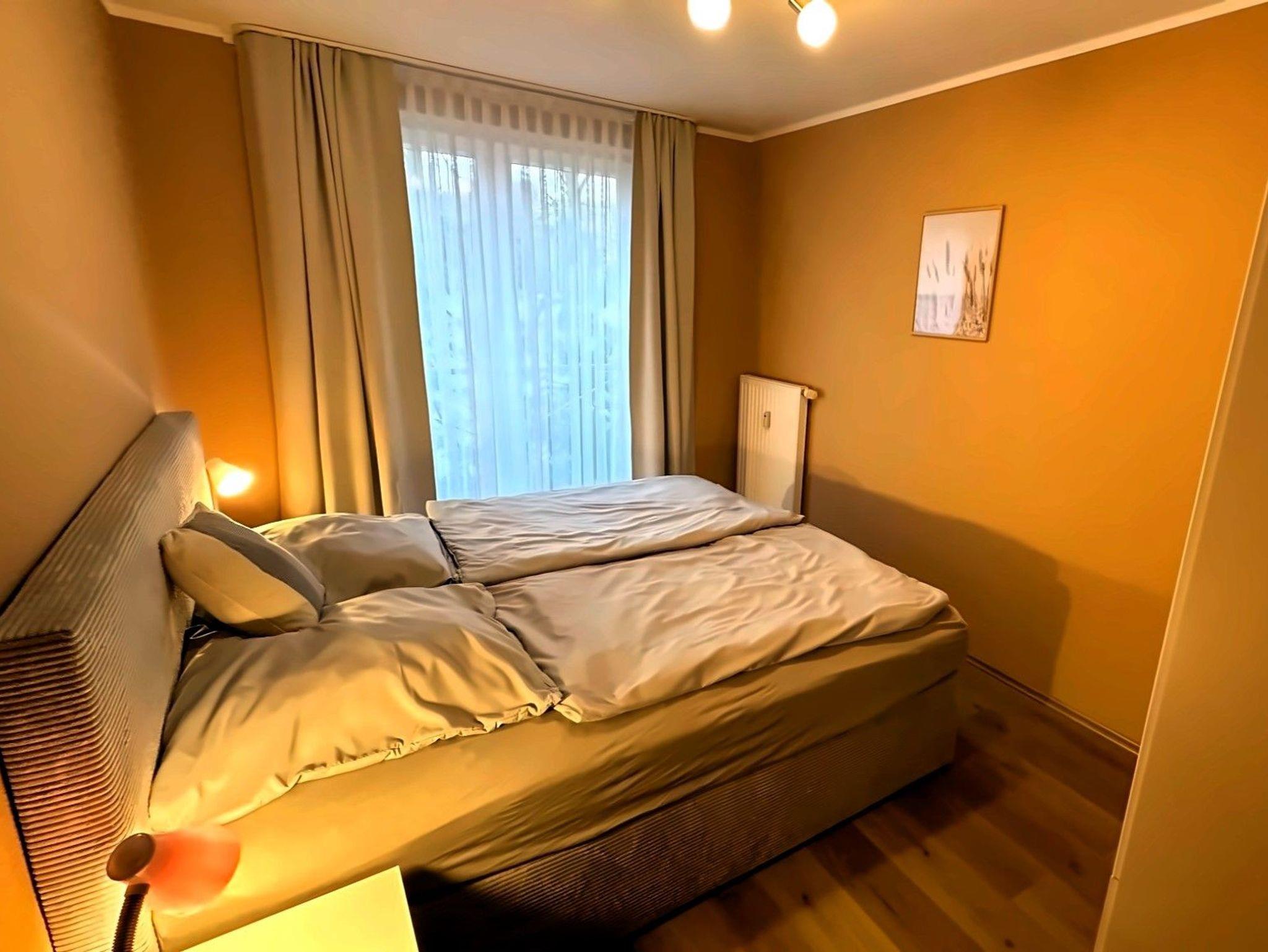 Im zweiten Schlafzimmer befinden sich ebenfalls ein Boxspringbett (160 cm x 200 cm) mit Topper und ein weiterer Kleiderschrank. Beide Schlafzimmer sind mit Verdunkelungsvorhängen ausgestattet.
