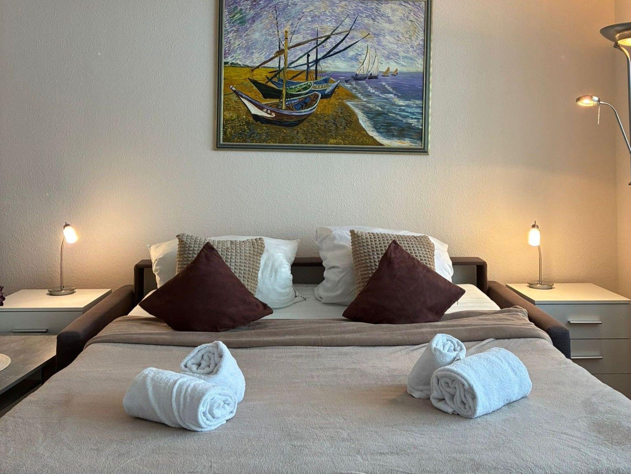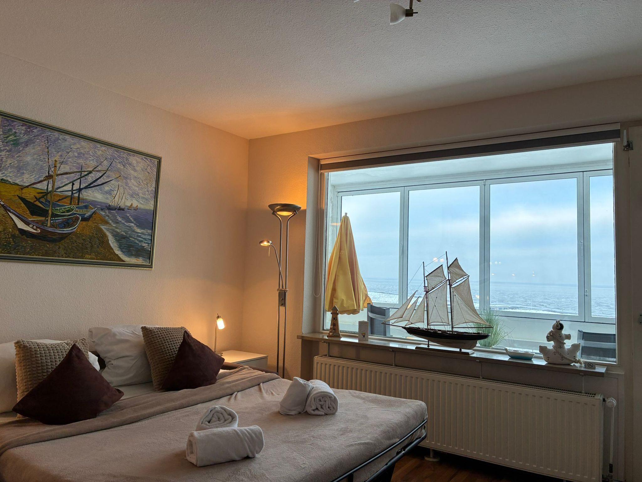Sie wohnen in einem 1-Zimmer-Appartement für bis zu 2 Personen in der 6. Etage mit Panoramaseesicht auf ca. 35 m² Wohnfläche, ein Wohn-/Schlafraum mit Doppelbettcouch, separater Essplatz, Flachbild-TV, voll ausgestattete Küche mit Mikrowelle, Dusche/WC, verglaster Loggia (Fenster sind zum aufschieben), PKW-Stellplatz und abschließbarer Fahrradgarage.