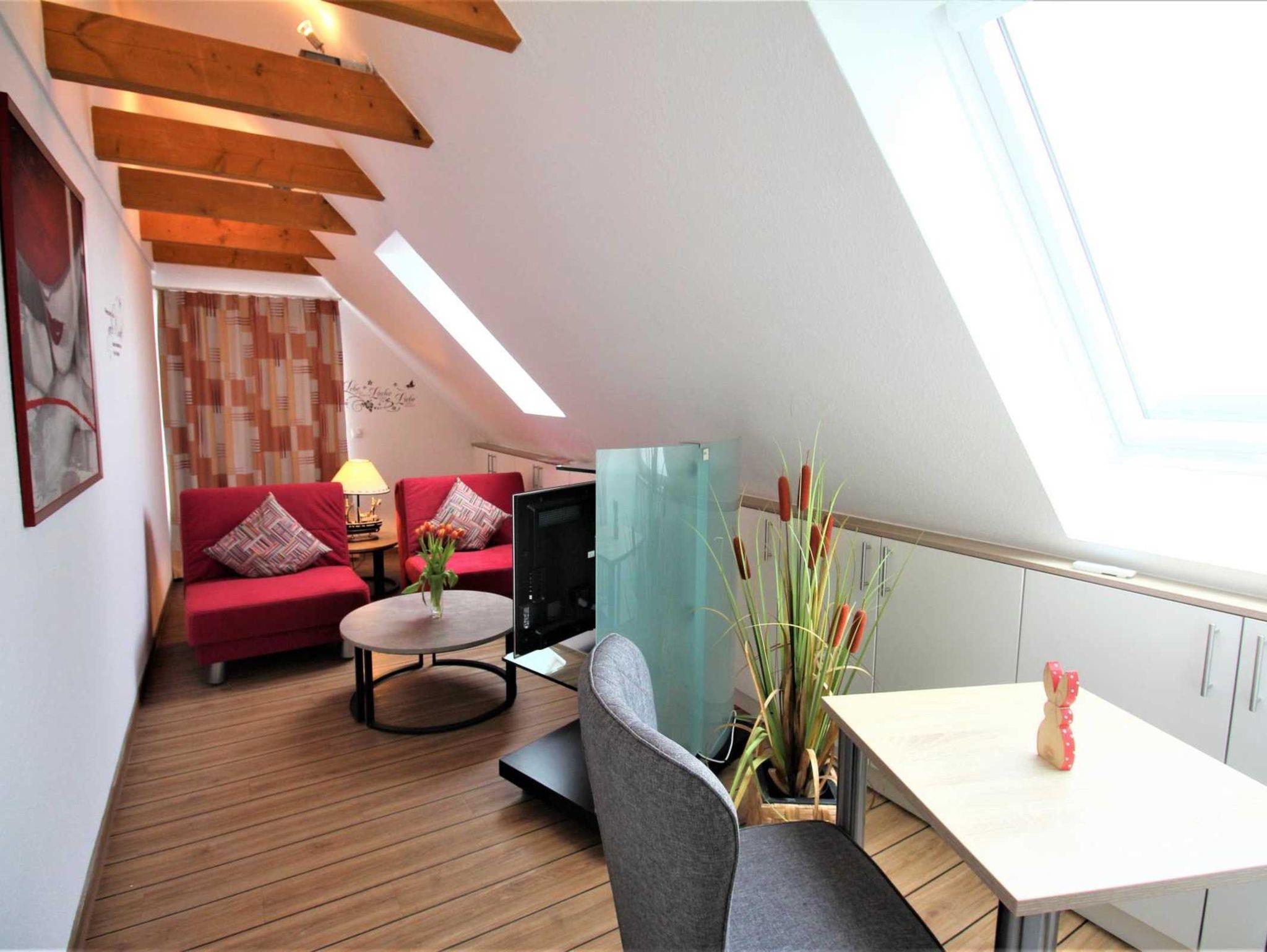 Sie erwartet eine moderne, nach Südwesten ausgerichtete Galeriewohnung mit 75 m² Wohnfläche. Im 4. OG und ruhig gelegen, Sonne den ganzen Tag und in unmittelbarer Nähe zum Strand sowie zum Ortskern.