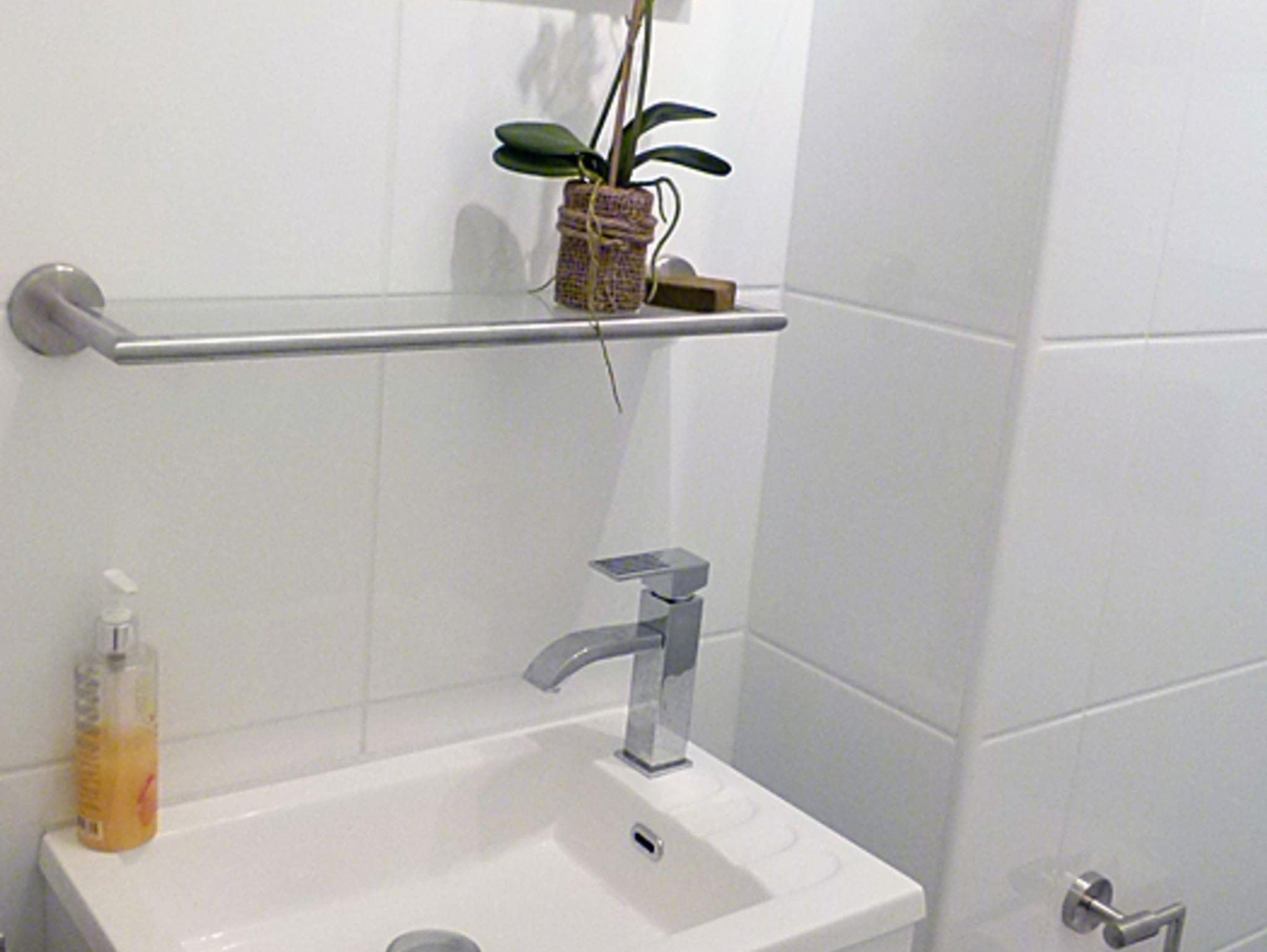 Der Eingangsflur, die Küche sowie Duschbad und separates WC sind mit hochwertigen Bodenfliesen in hochglanz-anthrazit ausgestattet. Die restlichen Bodenbeläge bestehen aus hochwertigem Laminat in Walnuss. Das Wohnzimmer lädt mit Ohrensessel und Relaxliege im Loungecharackter zum entspannten Lesen und Verweilen ein.