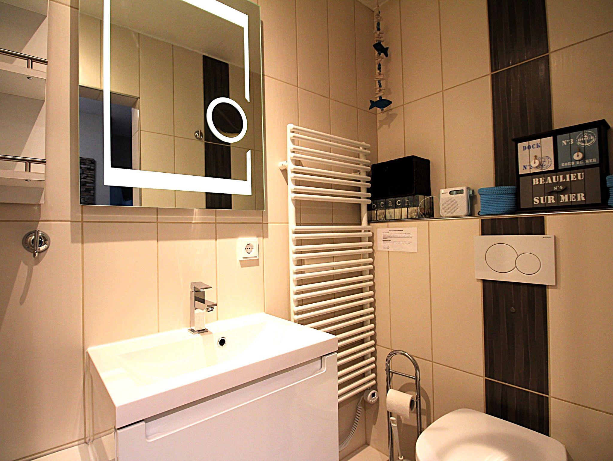 Das 2024 renovierte Bad ist mit Bad-Radio, Kosmetikspiegel und Föhn ausgestattet.