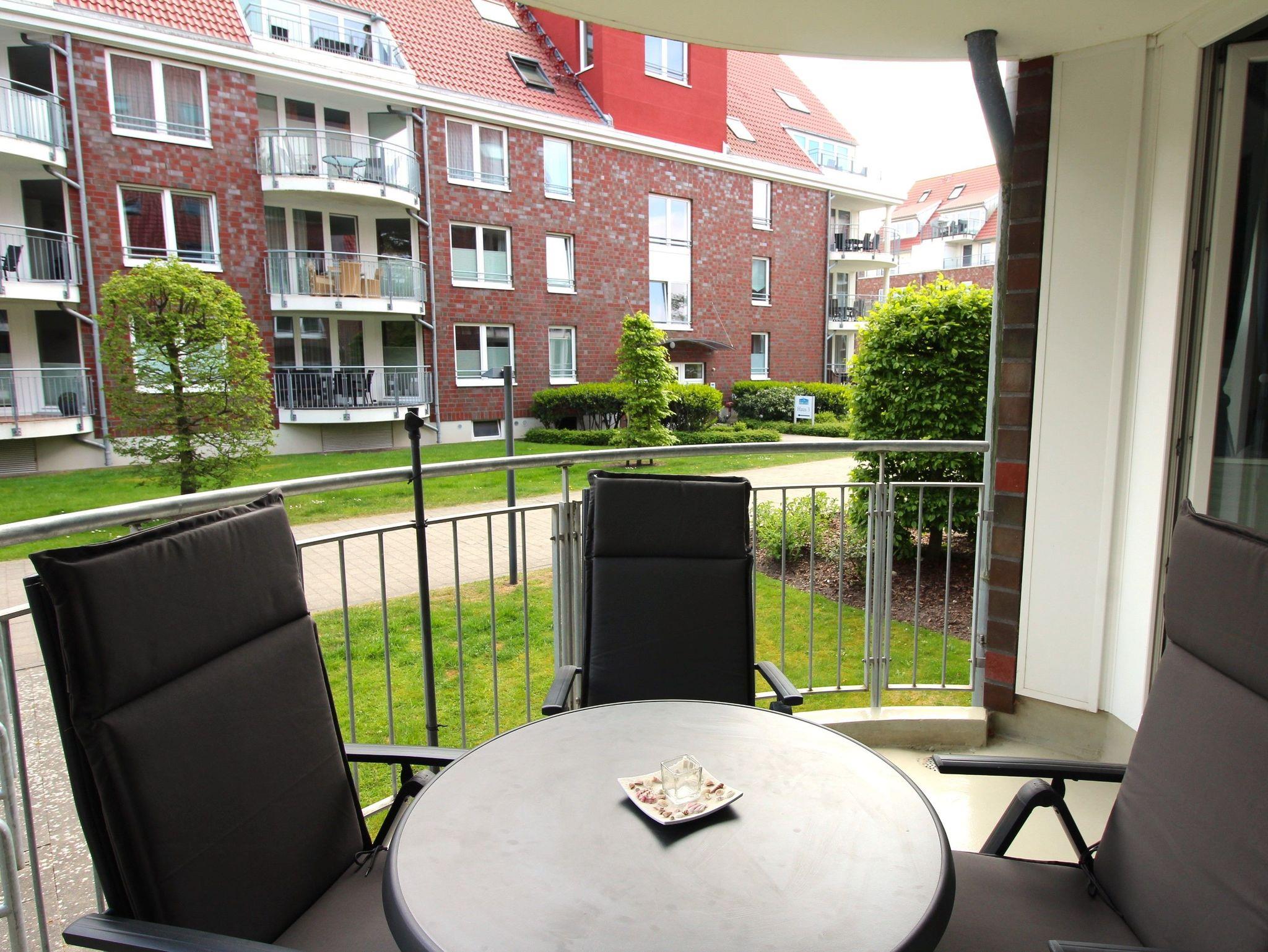 Um einen entspannten Urlaubstag ausklingen zu lassen bietet sich der vorhandene Balkon mit seinen schönen Möbeln geradezu an.