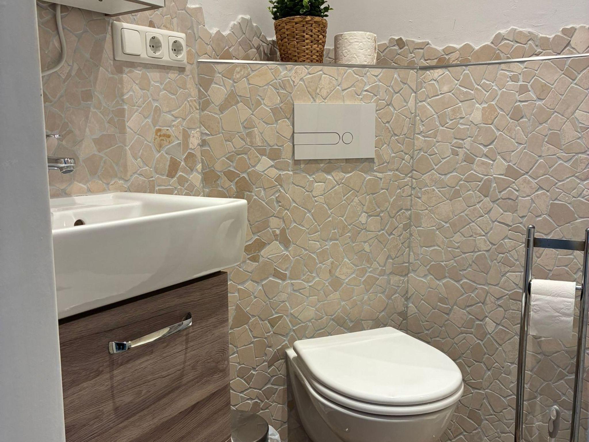 Das moderne Duschbad mit WC sorgt für ein wohliges Ambiente, PKW-Stellplatz vorhanden. Eine gemütliche Balkongarnitur lädt zum Verweilen auf dem Westbalkon ein.