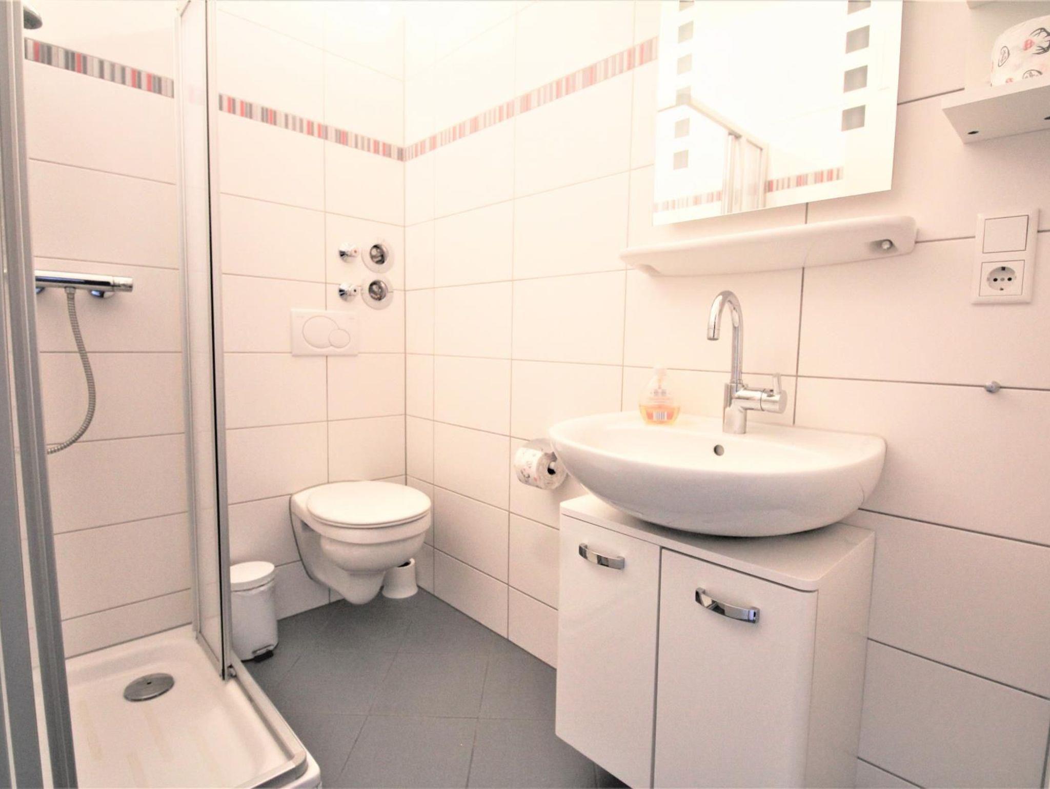 ° komplett saniertes Bad (2012) mit flacher Duschtasse