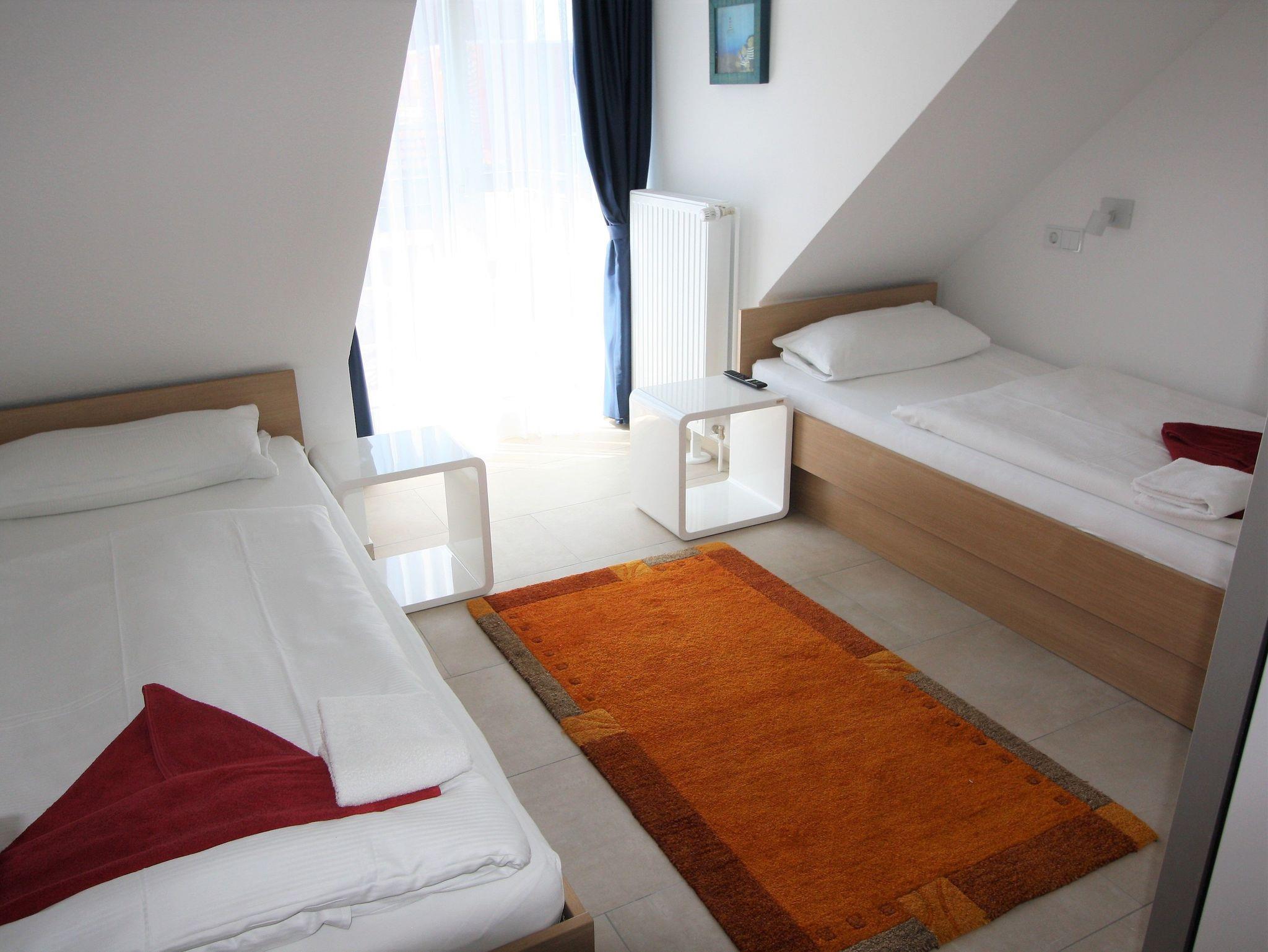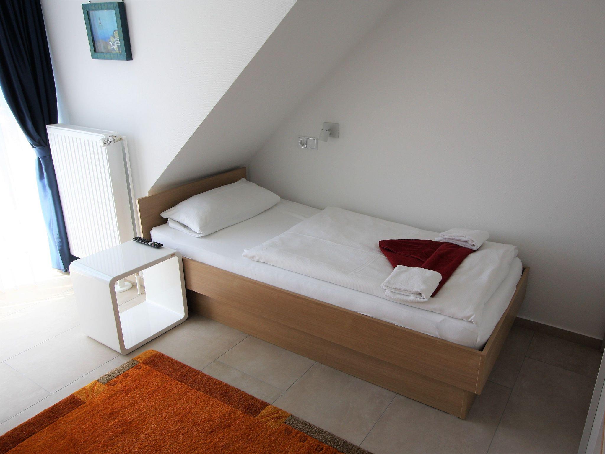 3-Zimmer-Appartement für bis zu 4 Personen auf ca. 5 m². Zwei Schlafzimmer mit Doppelbett bzw. Einzelbetten, Wohnraum mit Couch, TV, separatem Essplatz, voll ausgestattetem Küchenbereich, Balkon, Bad mit Dusche/WC. WLAN und PKW-Stellplatz vorhanden.