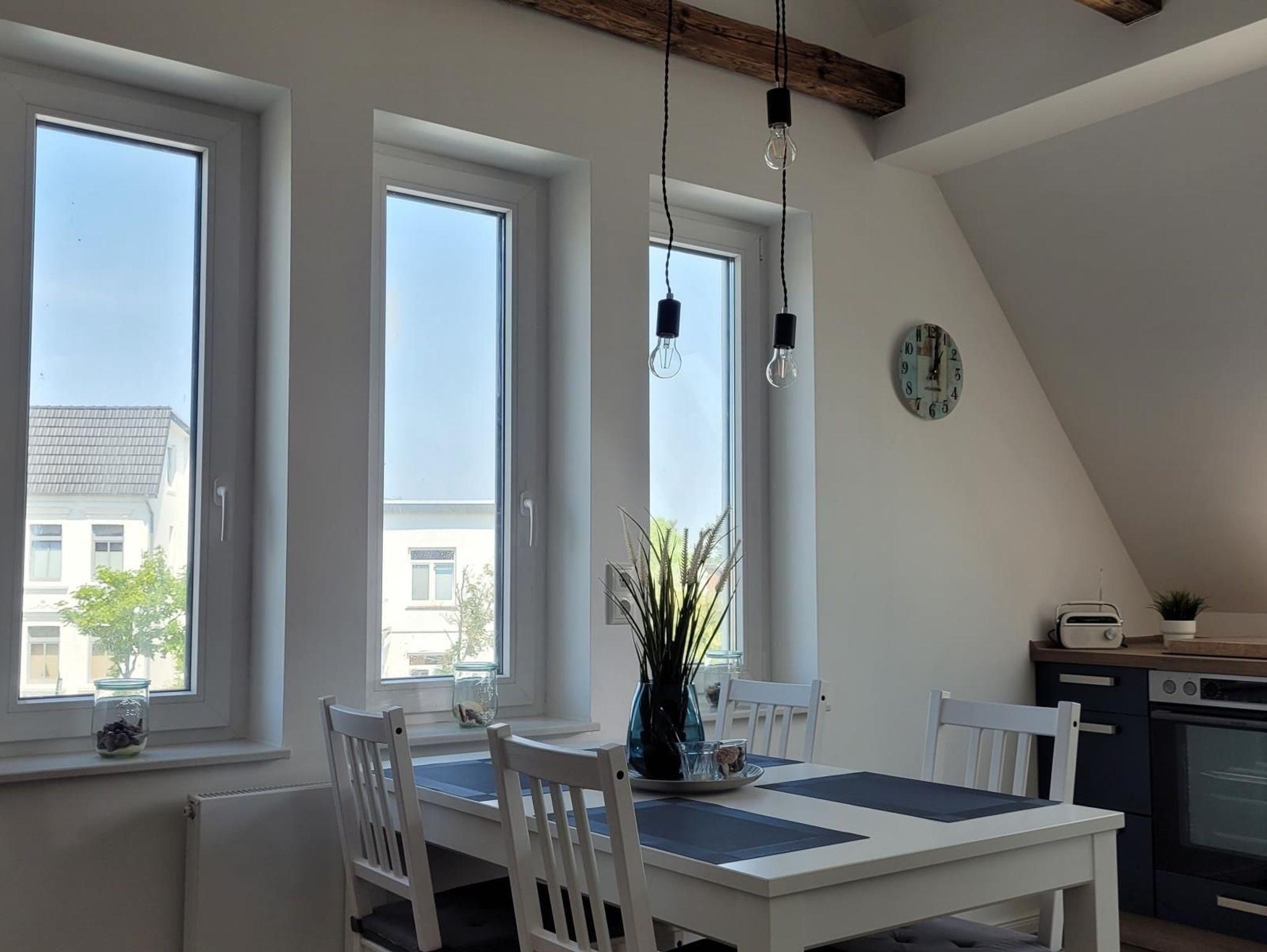Sie wohnen in einem schönen und komplett ausgestatteten 2-Zimmer-Appartement für bis zu 4 Personen auf ca. 43 m² im Dachgeschoss. Die Wohnung verfügt über ein Schlafzimmer mit Doppelbett (160 cm x 200 cm), ein Wohnzimmer mit gemütlicher Schlafcouch, einem Smart TV und kostenlosem WLAN. Durch eine Klimaanlage steht Ihnen im Sommer eine gute Kühlung zur Verfügung.