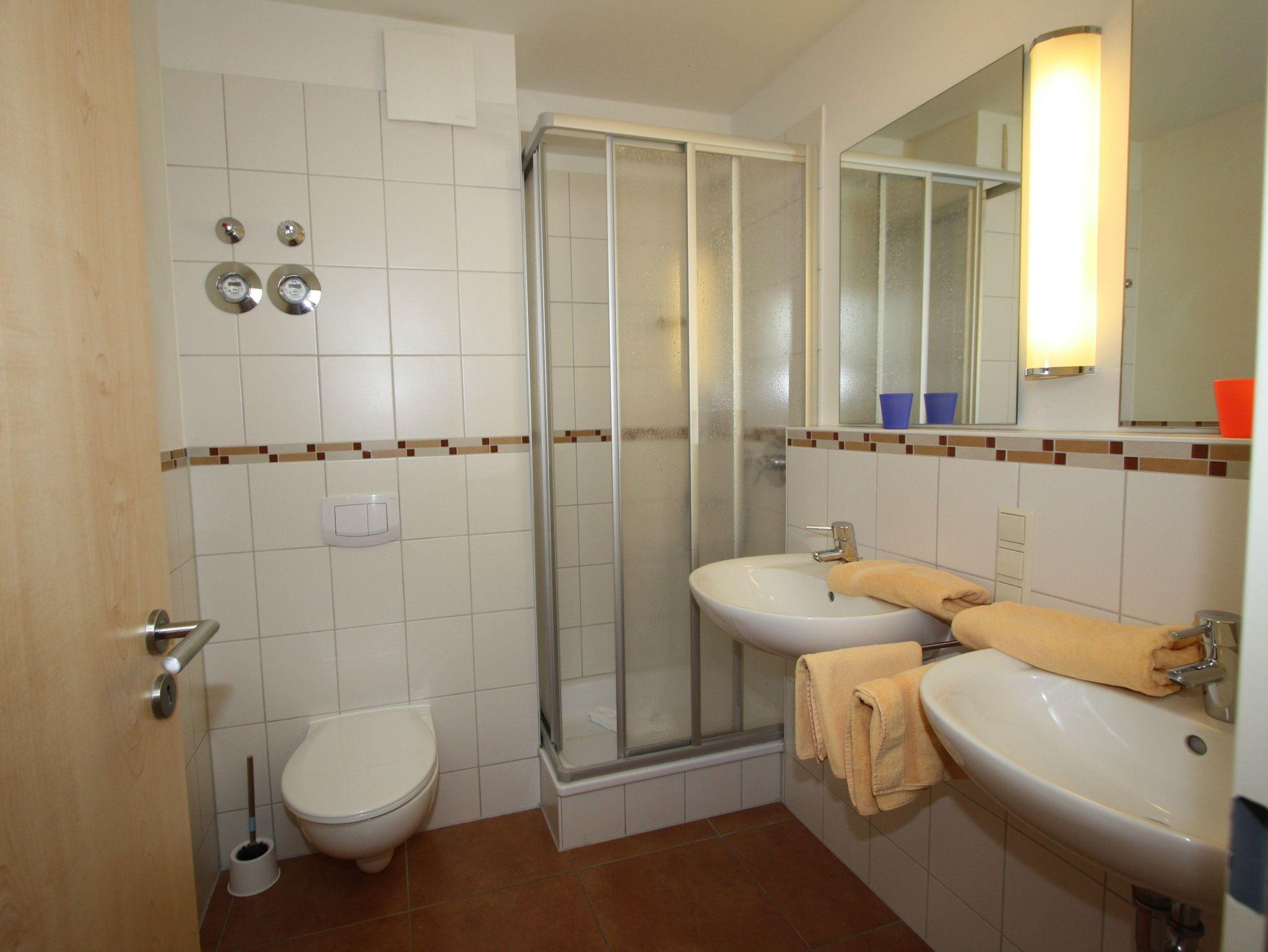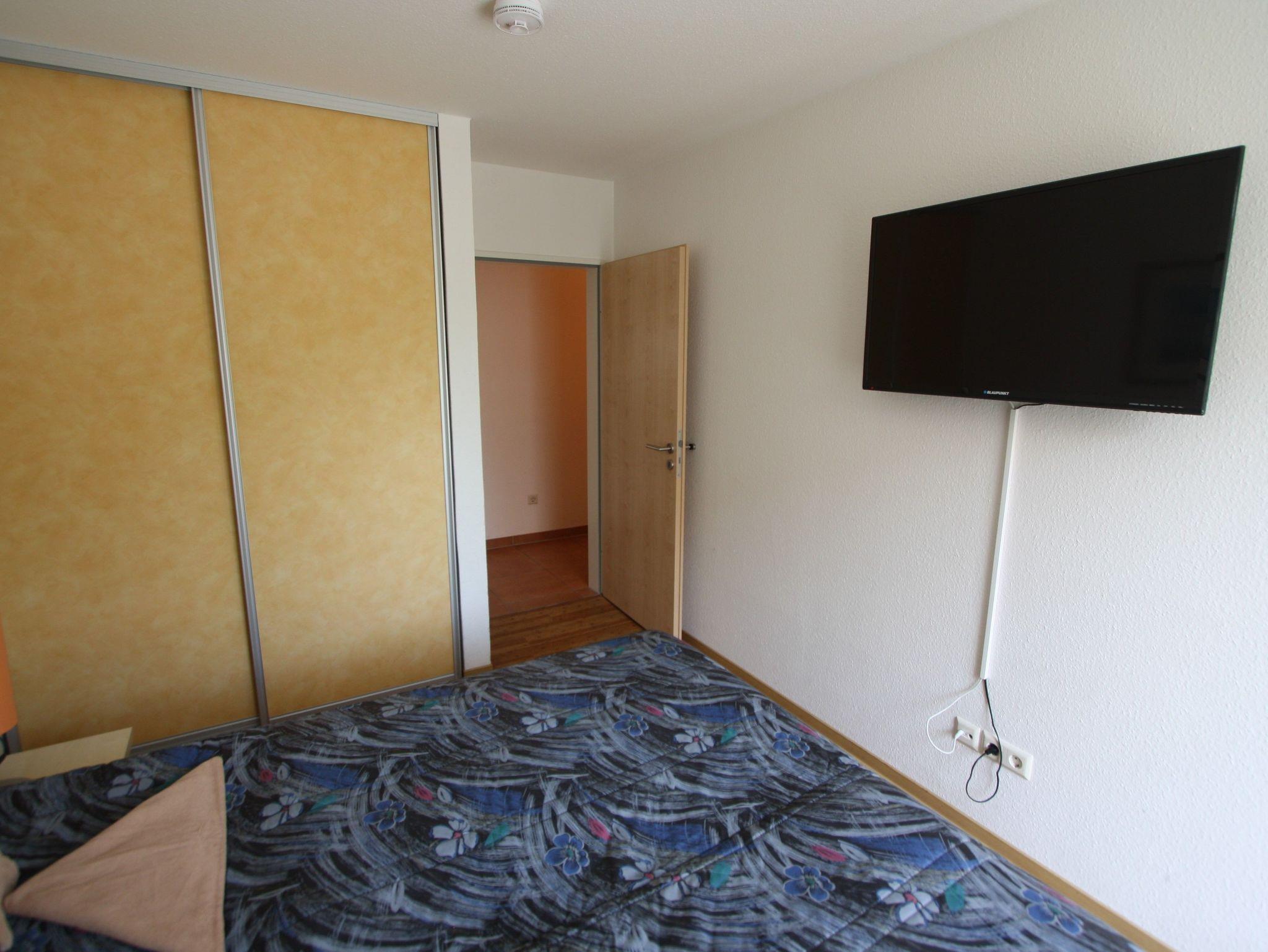Sie wohnen in einem 3-Zimmer-Appartement für bis zu 6 Personen auf 75 m² Wohnfläche im 1. Obergeschoss. Zwei Schlafzimmer mit Doppelbett, großer heller Wohn-/Schlafraum mit bequemer Doppelbettcouch, separater Essplatz, voll ausgestatteter Küchenbereich mit Geschirrspüler und Mikrowelle, Dusche/WC, großer möblierter Balkon, Abstellraum, SAT-TV (Flachbildschirm) und Mini-HiFi-Anlage mit DVD-Player.