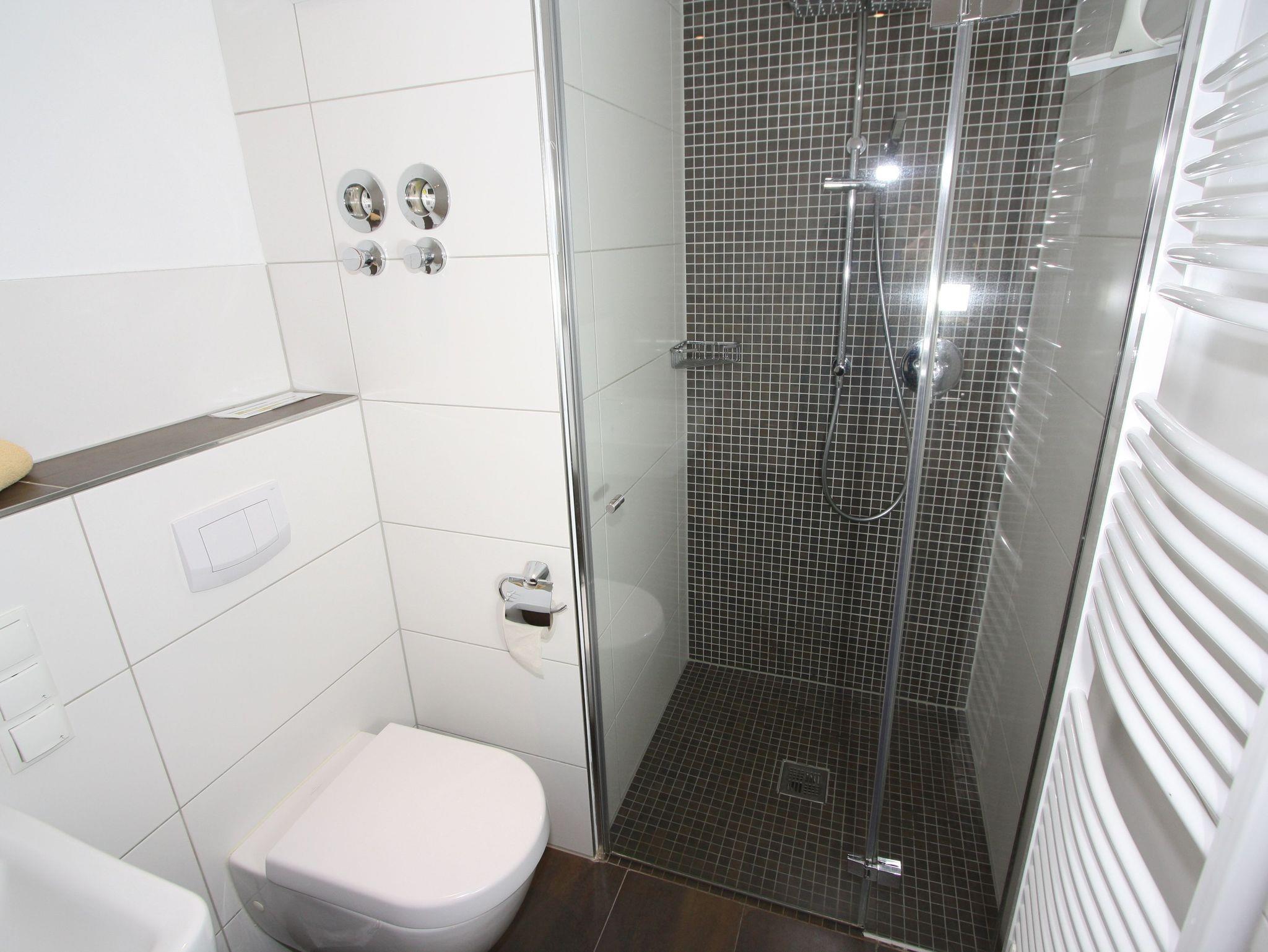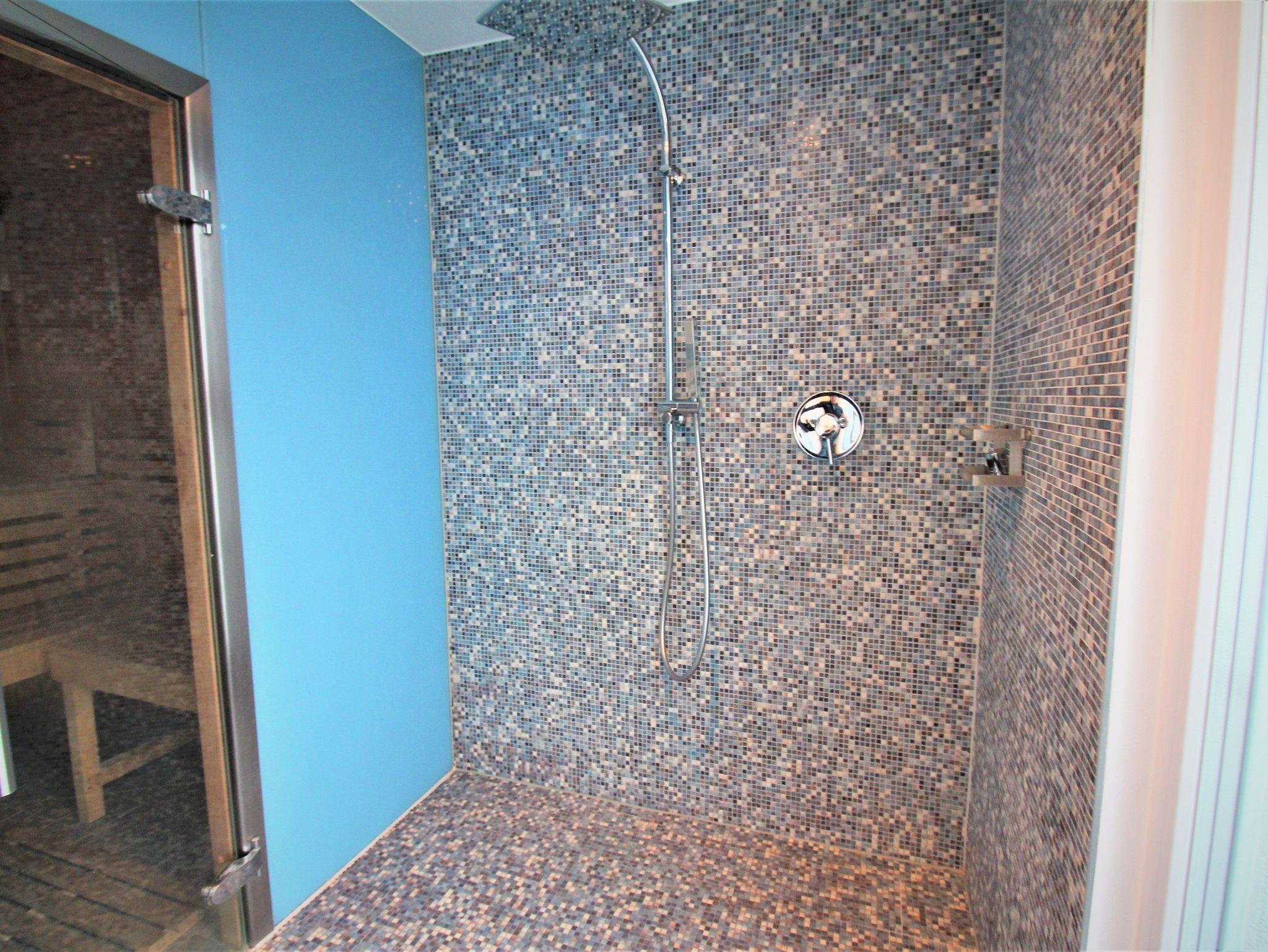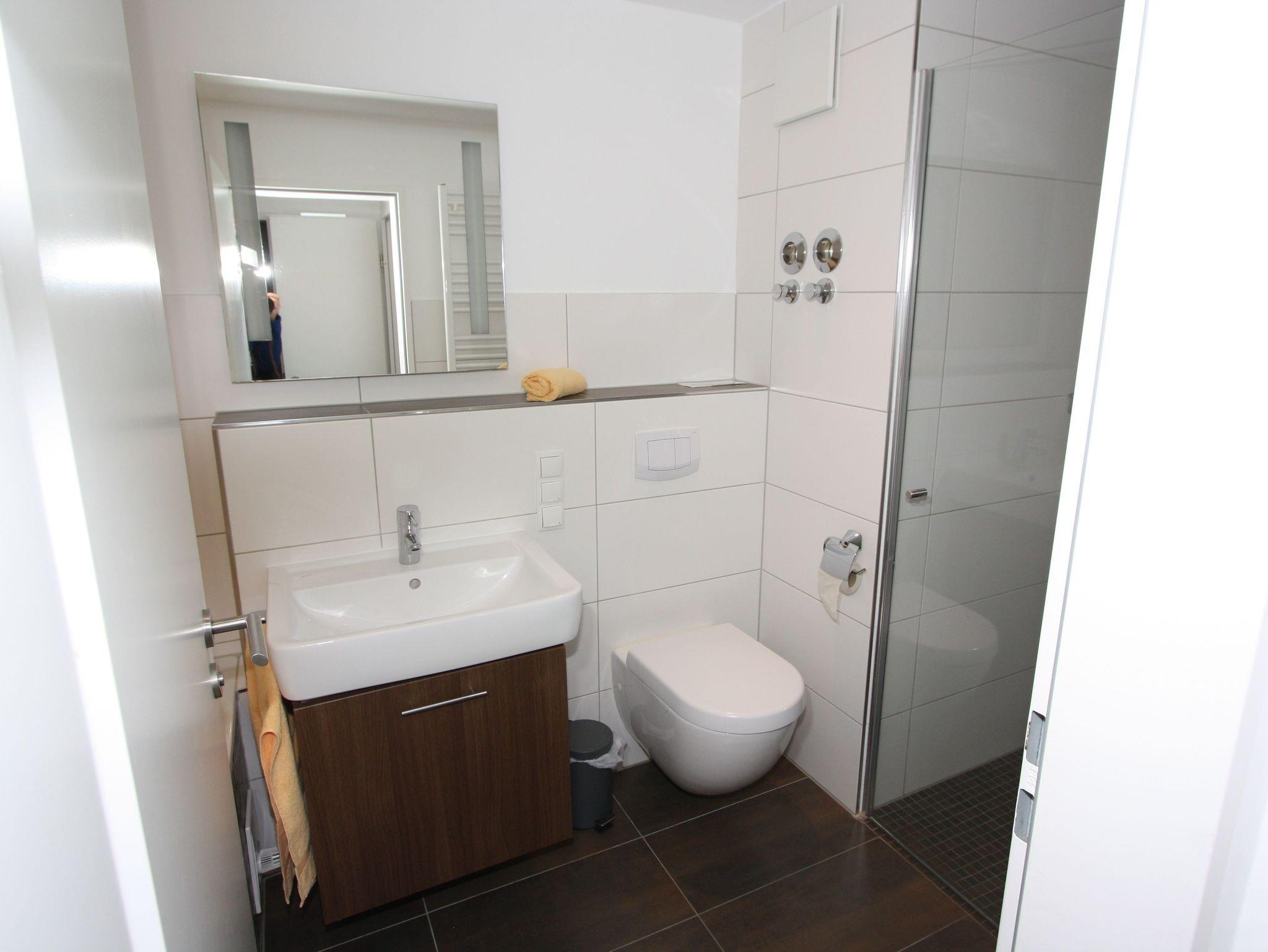 Alternativ können Sie nach einem schönen Urlaubstag in der gemütlichen Badewanne relaxen. Das moderne Bad verfügt zusätzlich über eine belebende Rainshower. Weiterhin gibt es ein separates Gäste-WC. Alle Bäder mit Fussbodenheizung.