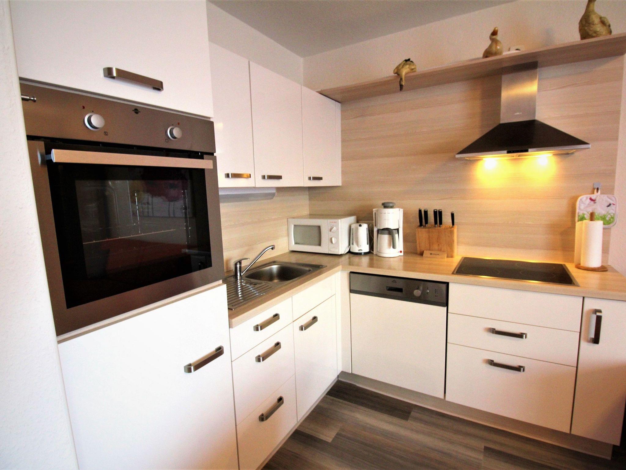 Sie wohnen in einem 2-Zimmer-Appartement für bis zu 4 Personen auf ca. 46 m² im Erdgeschoss. Ein Schlafzimmer mit Doppelbett, Wohn-/Schlafraum mit Doppelbettcouch, separater Essplatz, voll ausgestatteter Küchenbereich mit Mikrowelle und Geschirrspüler, Dusche/WC, Terrasse, SAT-Flachbild-TV. Die Fußböden sind alle gefliest bzw. Venylboden. Safe und Senseo Kaffeepadmaschine.