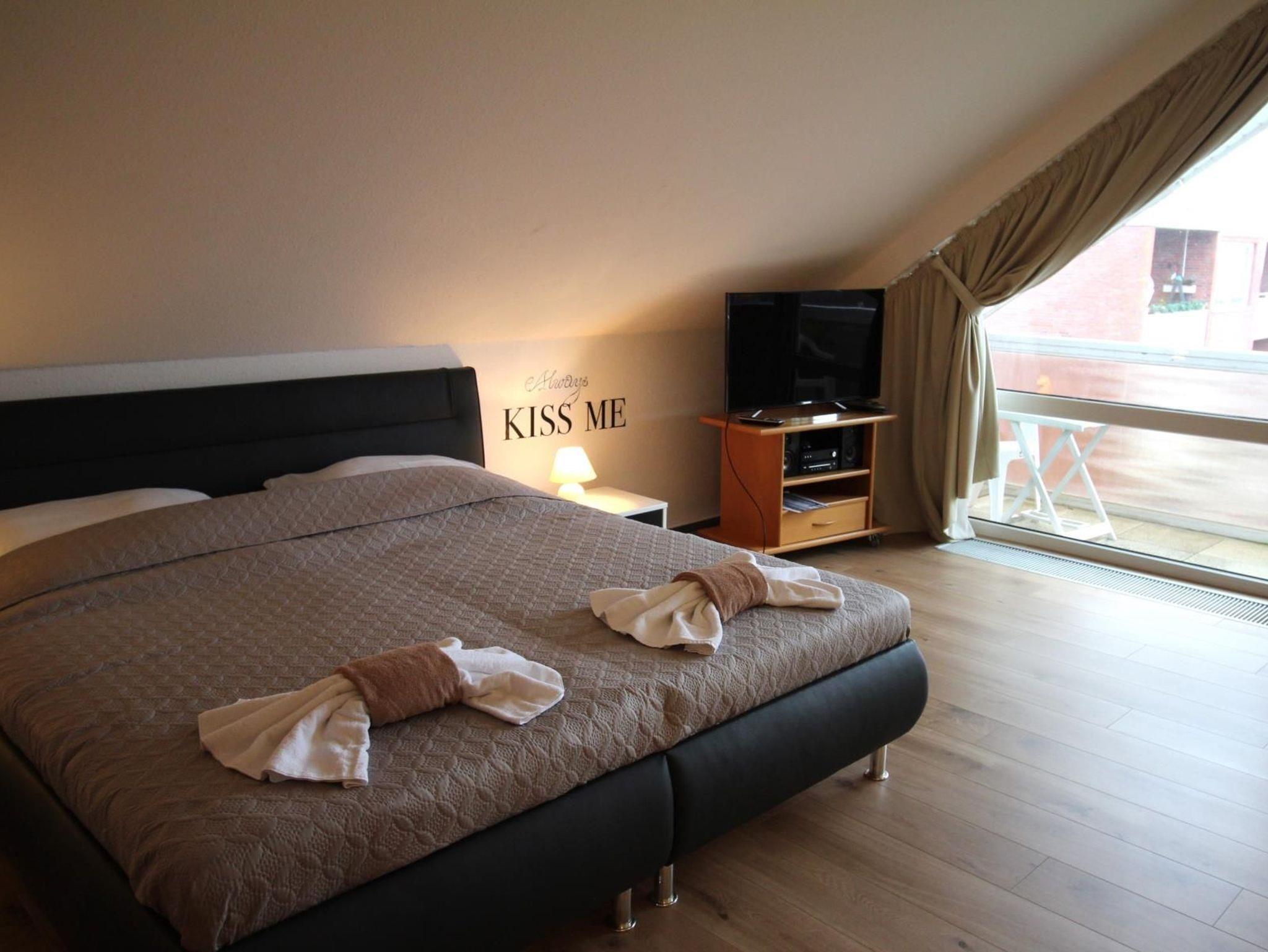 Sie wohnen in einem Ein-Zimmer-Ferienapartment mit Balkon, offener, voll ausgestatteter Küche, individuell eingerichtetem Wohnraum und Tageslichtbad mit Dusche und WC. Die Wohnung mit Doppelbett (180 cm x 200 cm) ist für zwei Personen ausgestattet. Unsere Gäste können den Freizeitbereich der Residenz Trafalgar mit Hallenbad, Whirlpool, Fitnessraum und Sauna kostenfrei nutzen.