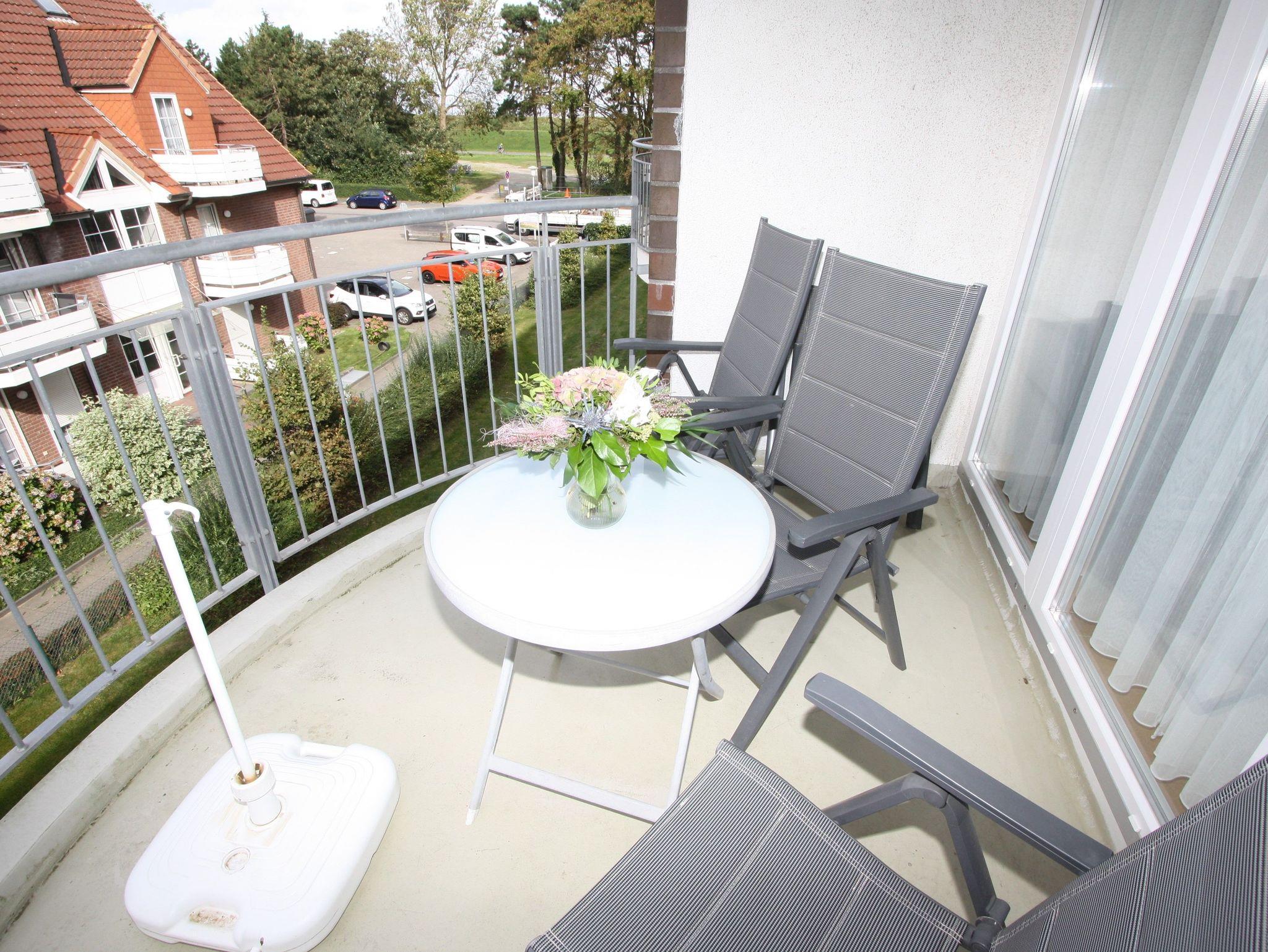 ? (eingeschränkter) Blick auf die Nordsee vom Wohnraum und Balkon
