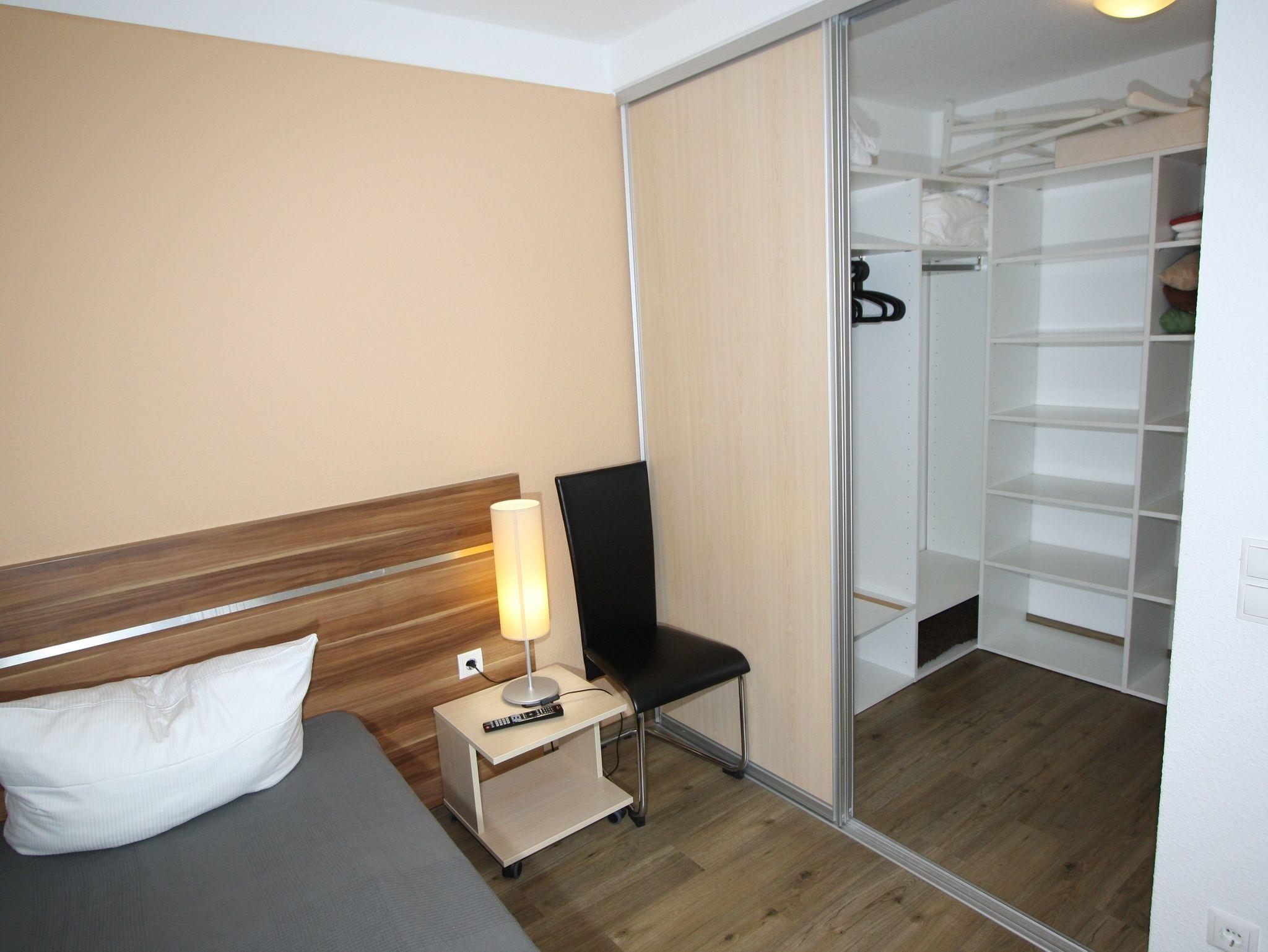 In der Wohnung befinden sich zwei Schlafzimmer mit genügend Stauraum für Bekleidung (eines der