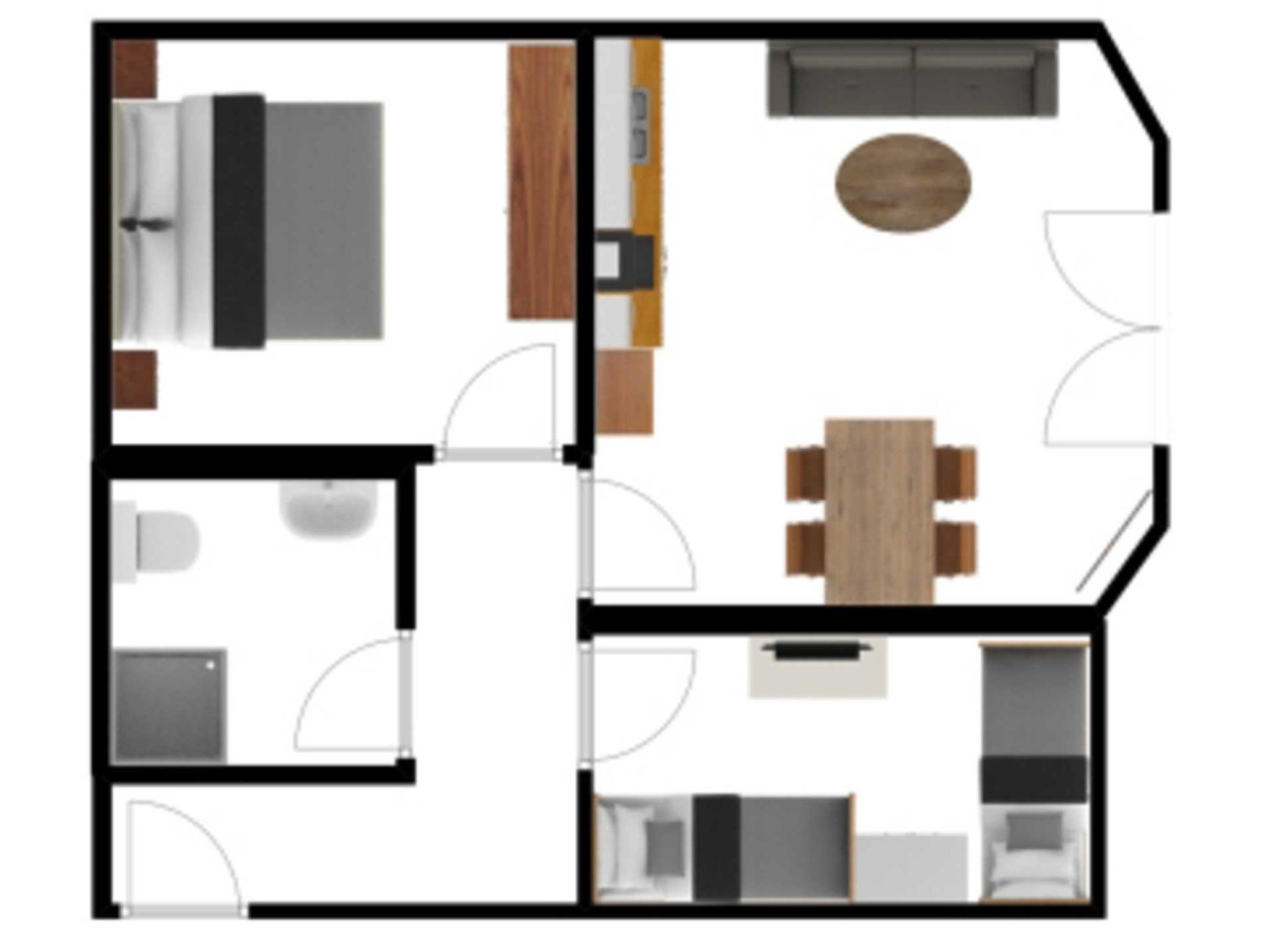 Die im Wohnraum integrierte Küchenzeile ist mit einem Backofen, Kühlschrank mit Gefrierfach und einer Mikrowelle ausgestattet. Zudem finden Sie alle Utensilien in der Küche, die Sie sonst auch im Alltag benötigen. Die Terrasse lädt zum Sonnenbaden und gemütlichen Zusammensitzen in den Abendstunden ein.
