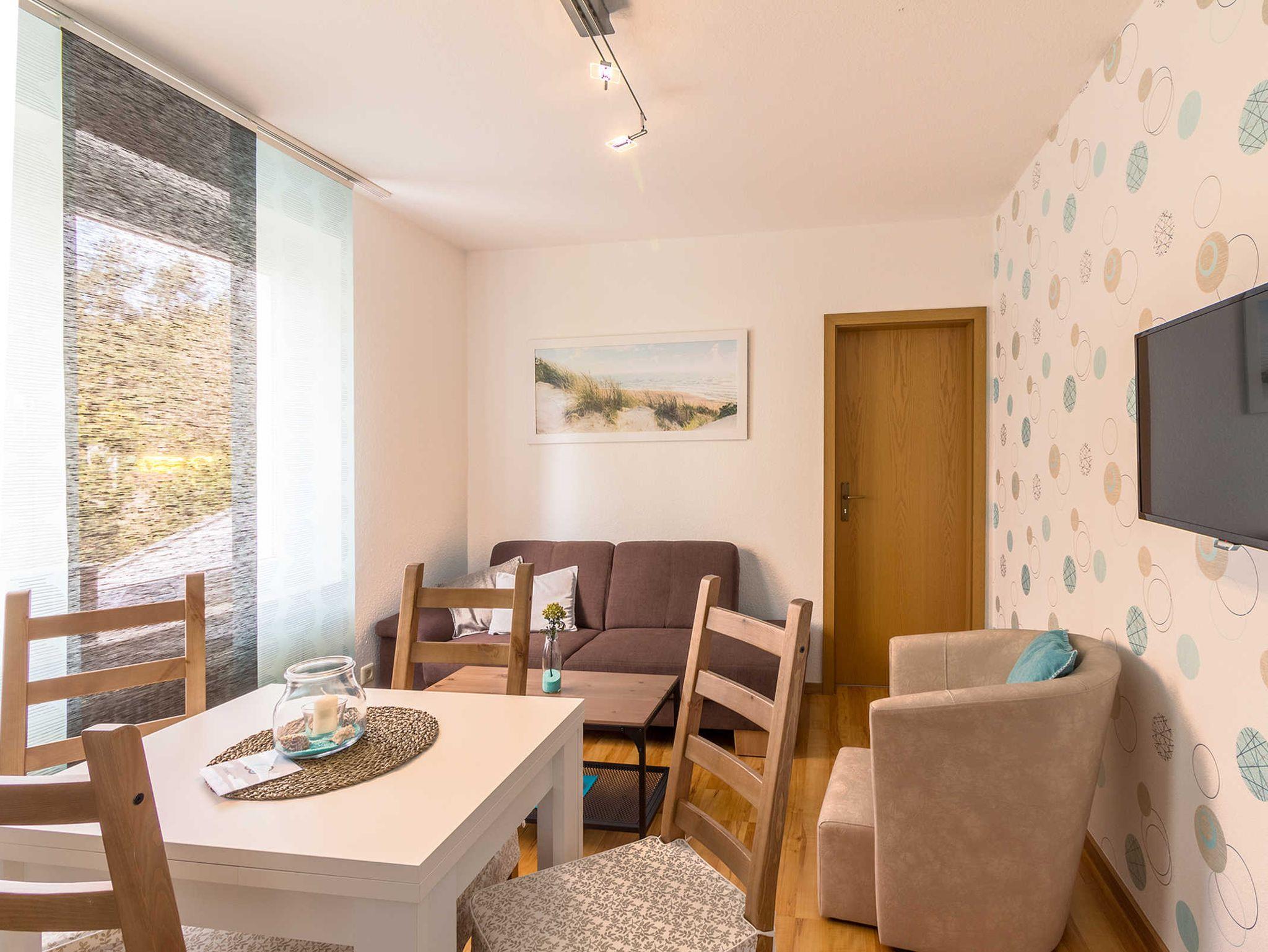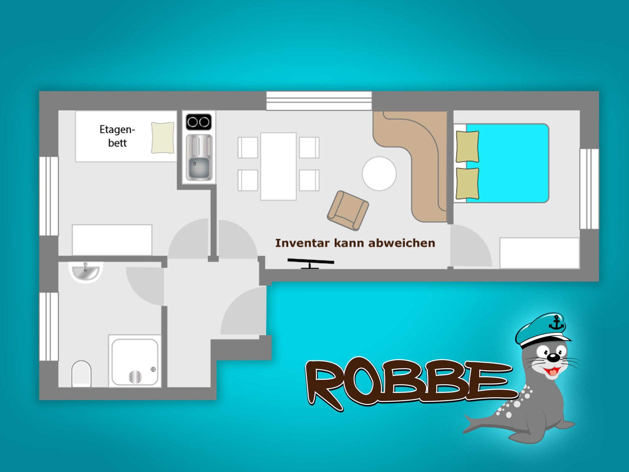 Die Ferienwohnung Robbe befindet sich im Erdgeschoss und bietet Platz für zwei Erwachsene und zwei Kinder.