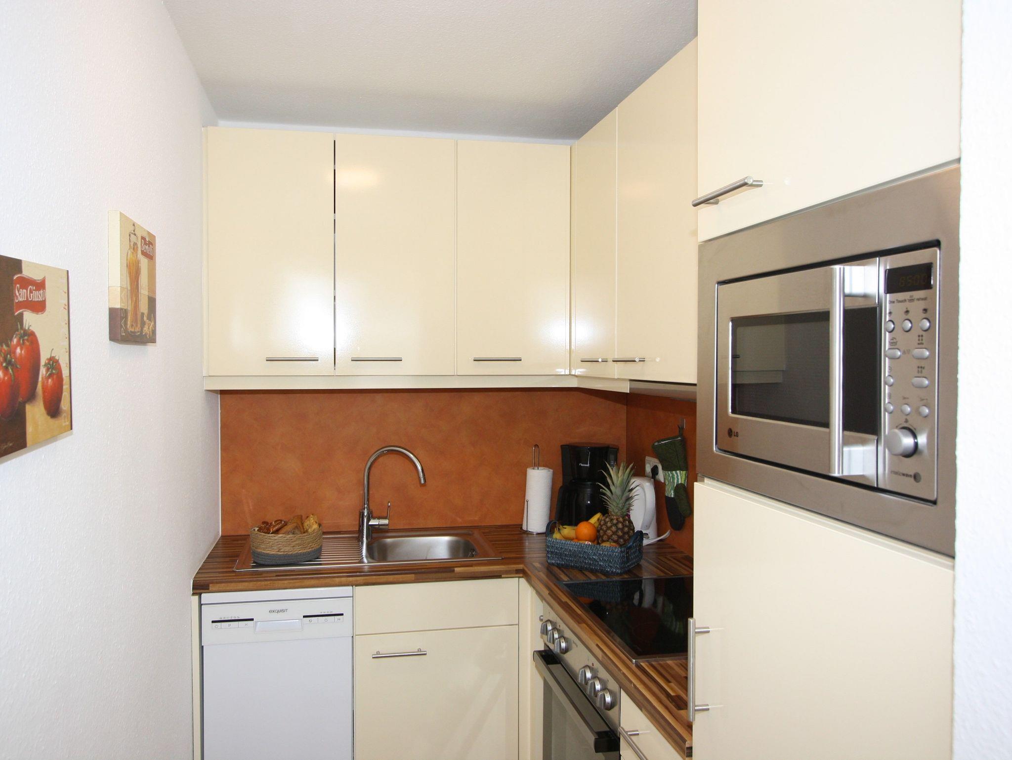 - Küche mit Herd und Ceranfeld, Dunstesse, Geschirrspüler, Mikrowelle, Wasserkocher, Kühlschrank, Toaster und sebstverständlich ausreichend Geschirr