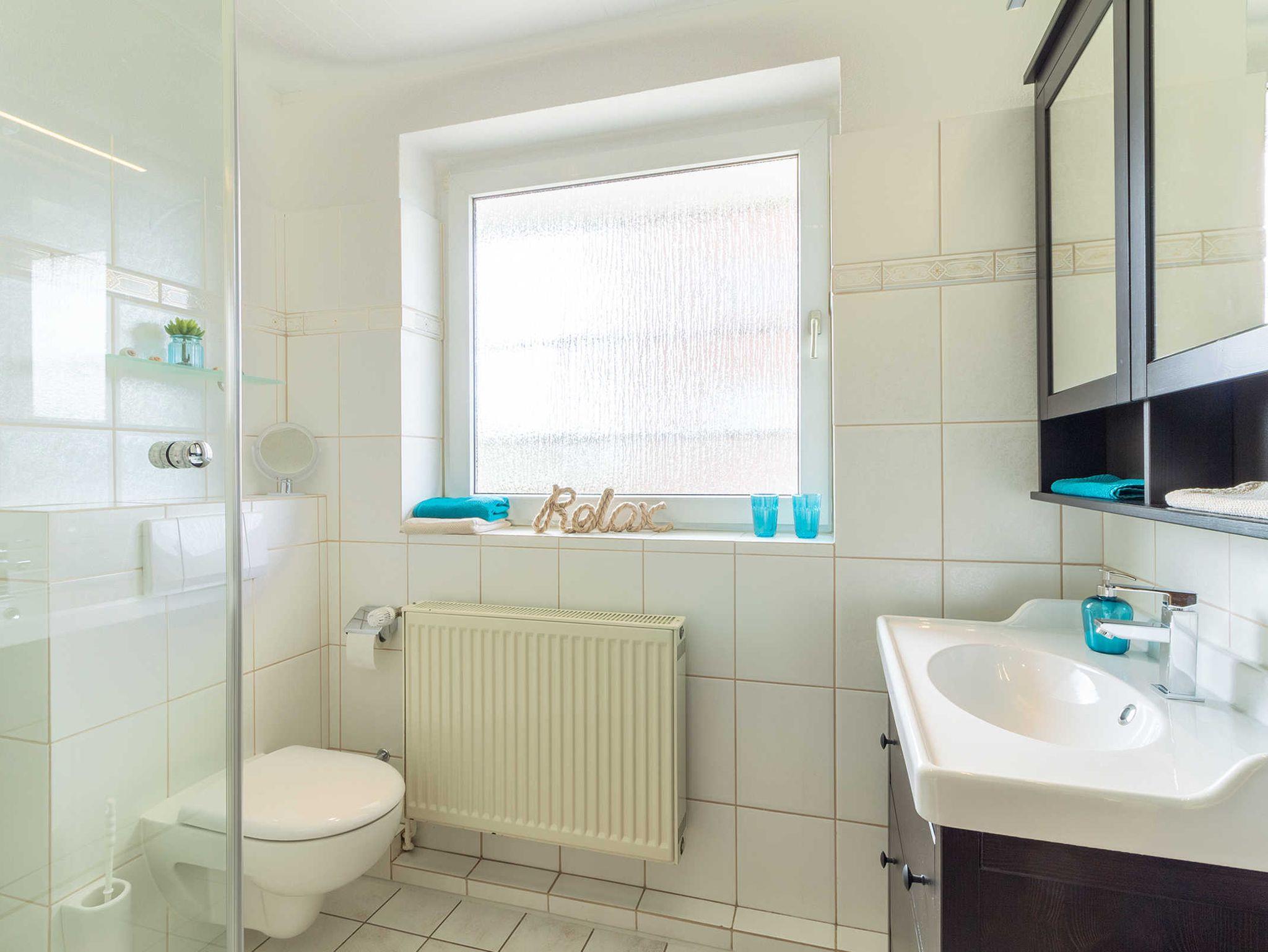 Ein modernes Bad mit Dusche lässt keine Wünsche offen.