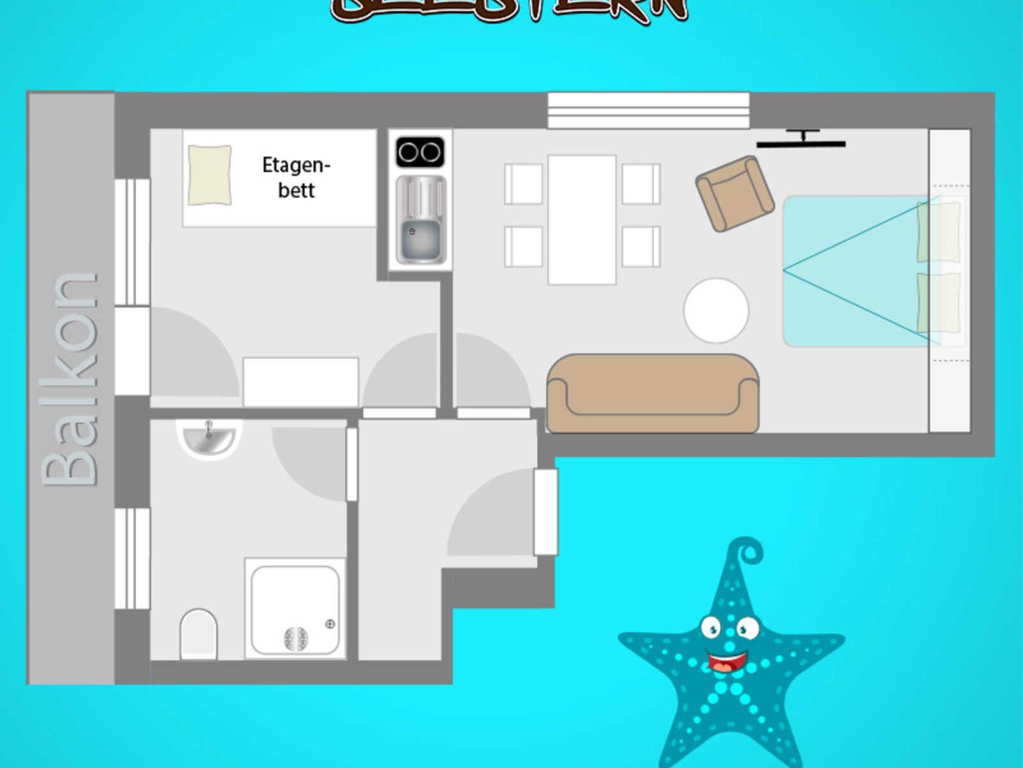 Die Ferienwohnung Seestern befindet sich im ersten Obergeschoss und bietet Platz für vier Personen.