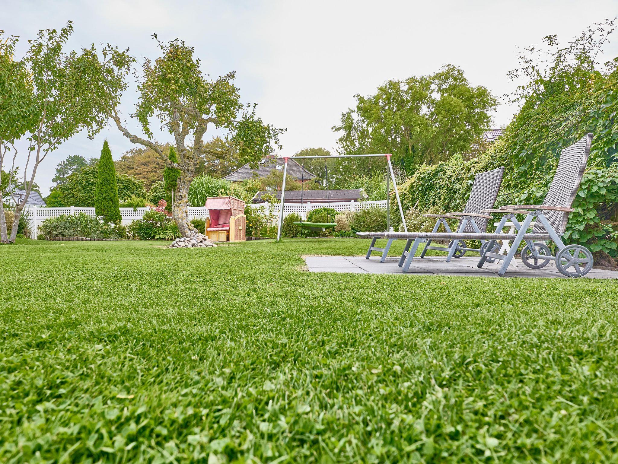 • Großer Gemeinschaftsgarten mit Terrasse, Gartenmöbeln und Strandkörben
