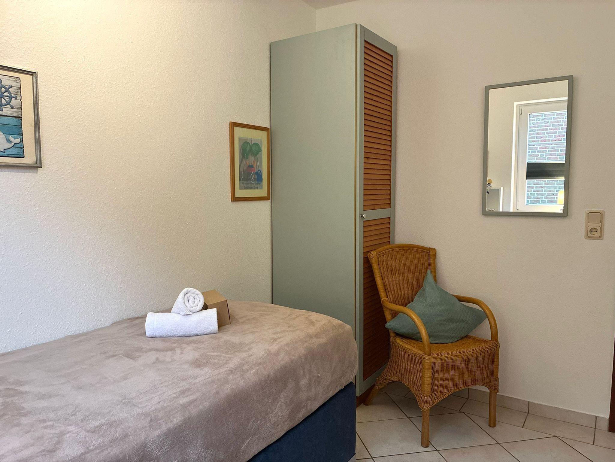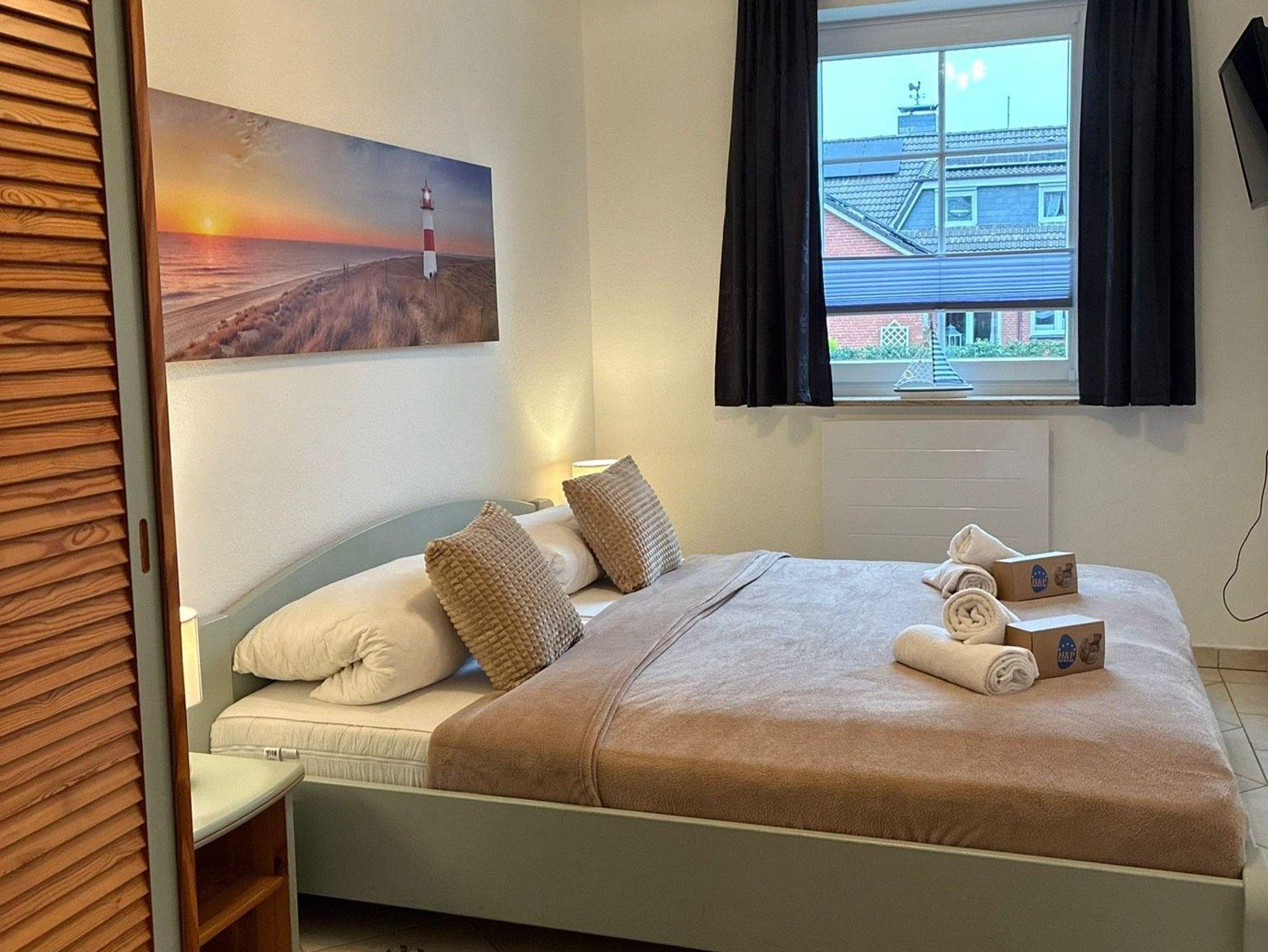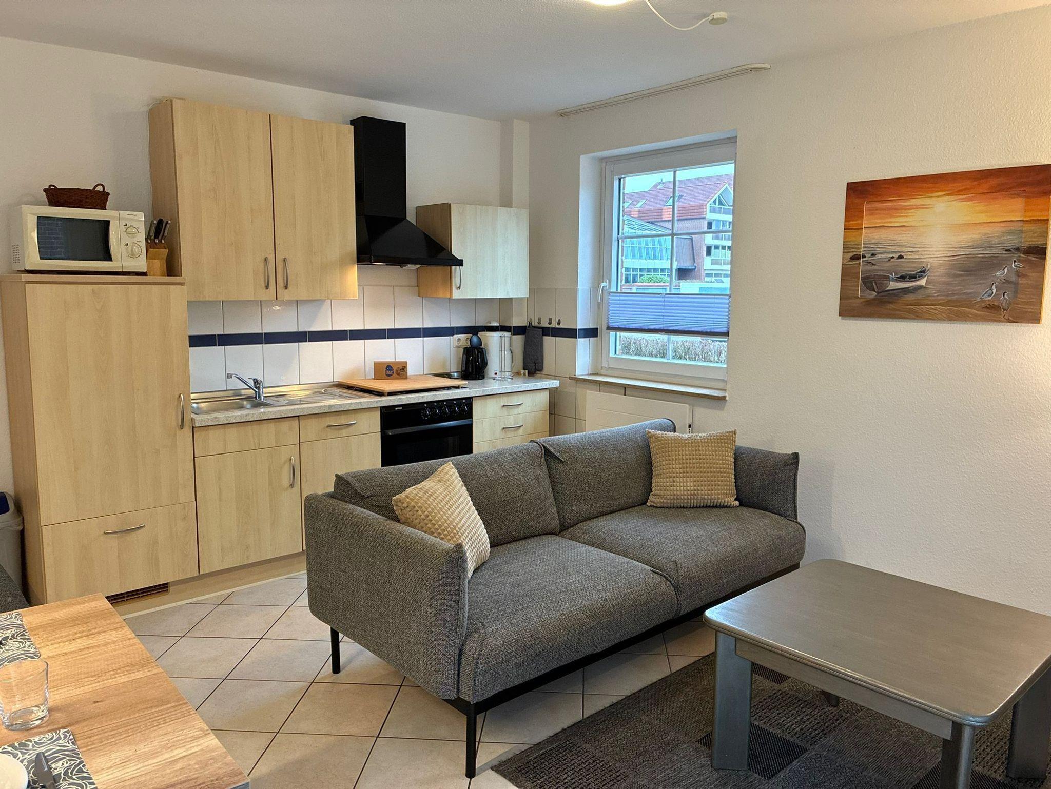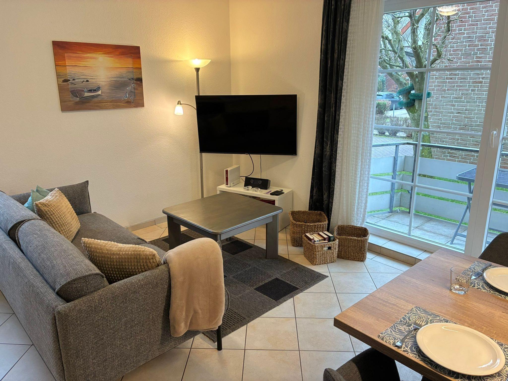 Sie wohnen in einem hübschen 3-Zimmer-Appartement im Erdgeschoss auf ca. 50 m² Wohnfläche. Ein Schlafraum mit Doppelbett und TV Gerät, ein Schlafraum mit zwei Einzelbetten, Wohnraum mit bequemer Sitzgarnitur und 50“ Smart TV Gerät mit dem die Gäste mit ihrem eigenen Account Netflix und Co. schauen können, WLAN, separater Essplatz, voll ausgestattete Einbauküche mit Geschirrspüler, Dusche/WC (Dusche mit flacher Duschtasse), Balkon, mit Einzelgarage. Die Wohnung ist nur wenige hundert Meter vom Hundestrand an der Kugelbake mit Sand- oder Rasenstrand und der Hundespielwiese am Beach House entfernt.