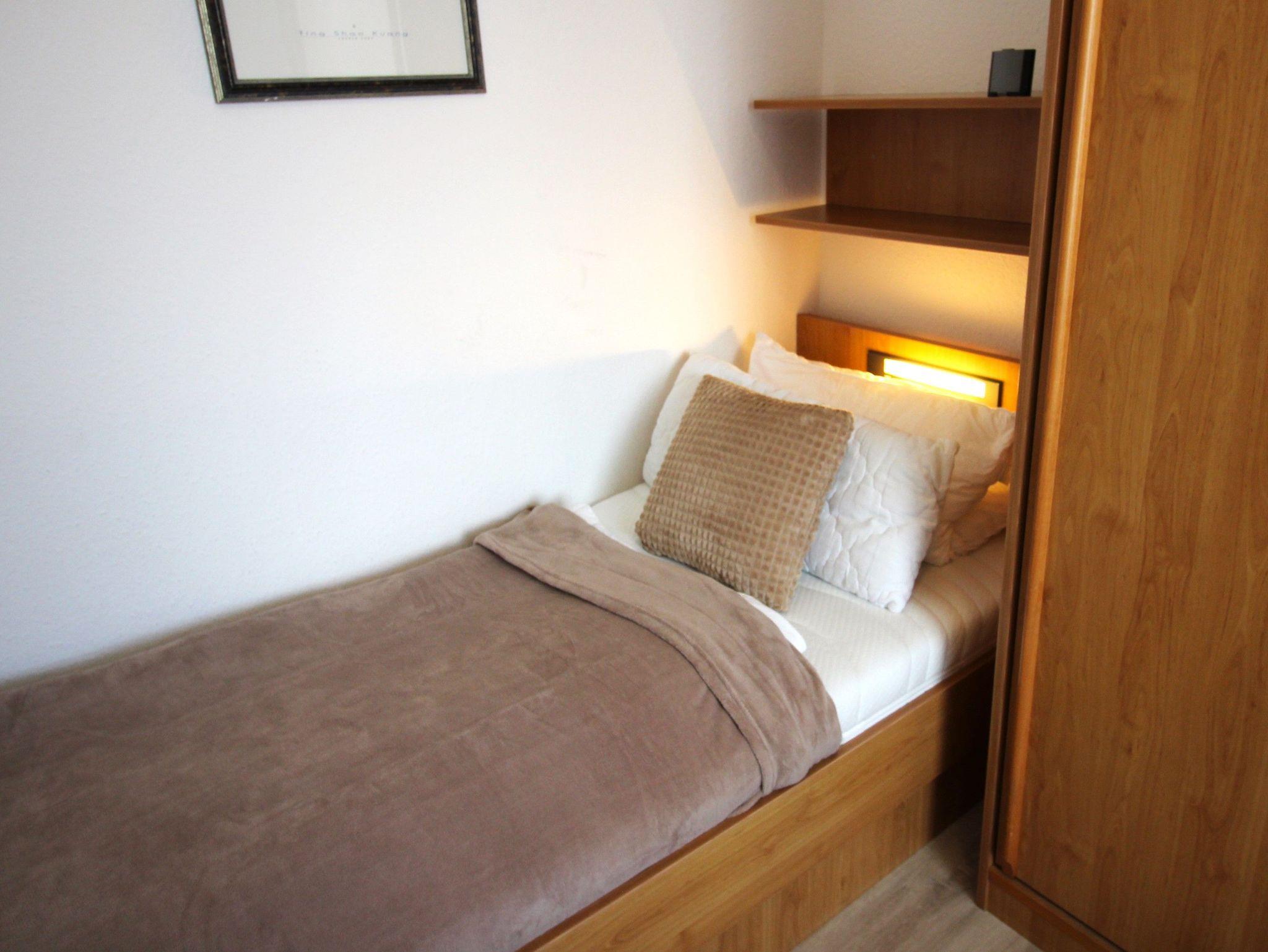 Die Wohnung verfügt über einen Wohn-/Schlafraum mit einem durch Raumteiler abgetrennten Doppelbett und ein Schlafzimmer mit zwei getrennten Betten sowie einen separaten Essplatz, voll ausgestatteter Küchenbereich mit Geschirrspüler, Dusche/WC, Balkon, Flachbild-TV.