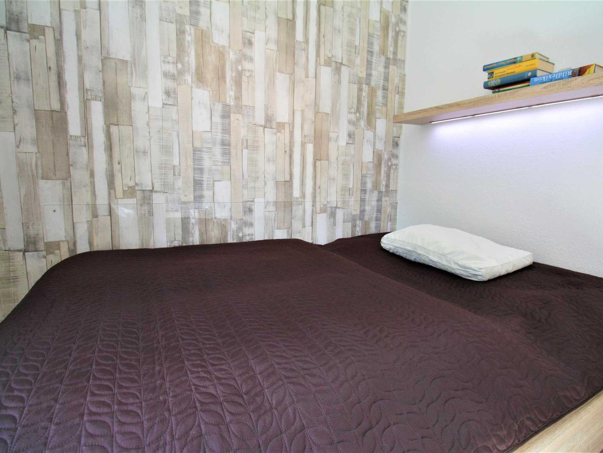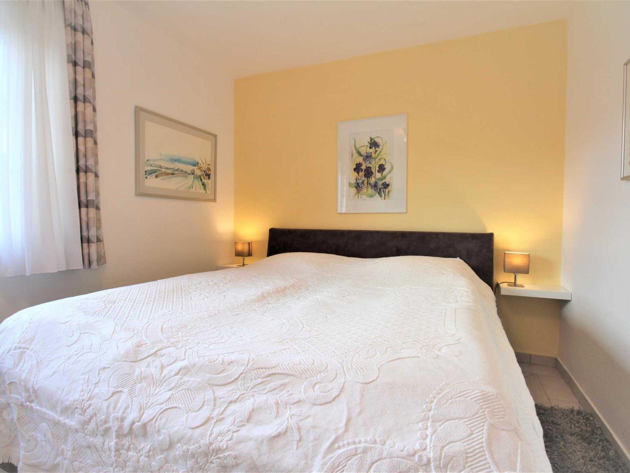 Die komplett geflieste Wohnung verfügt über 2 modern eingerichtete Schlafzimmer, wobei das größere ein Boxspringbett (180 cm x 200 cm) und das kleinere ein Futonbett (140 cm x 200 cm) hat. Beide Schlafräume sind mit einem Flachbildfernseher ausgestattet, das kleinere mit DVD-Player und einem kleinen Tisch.