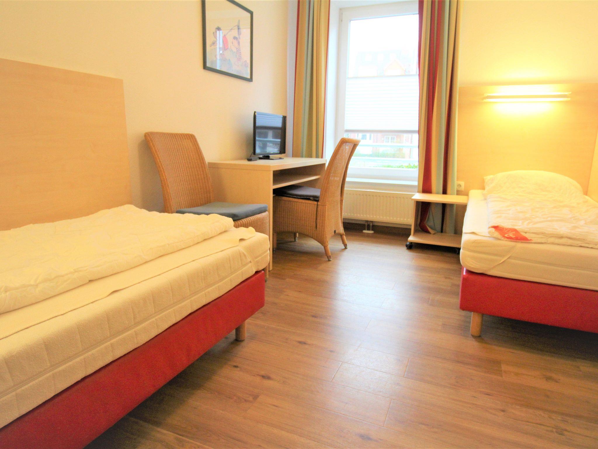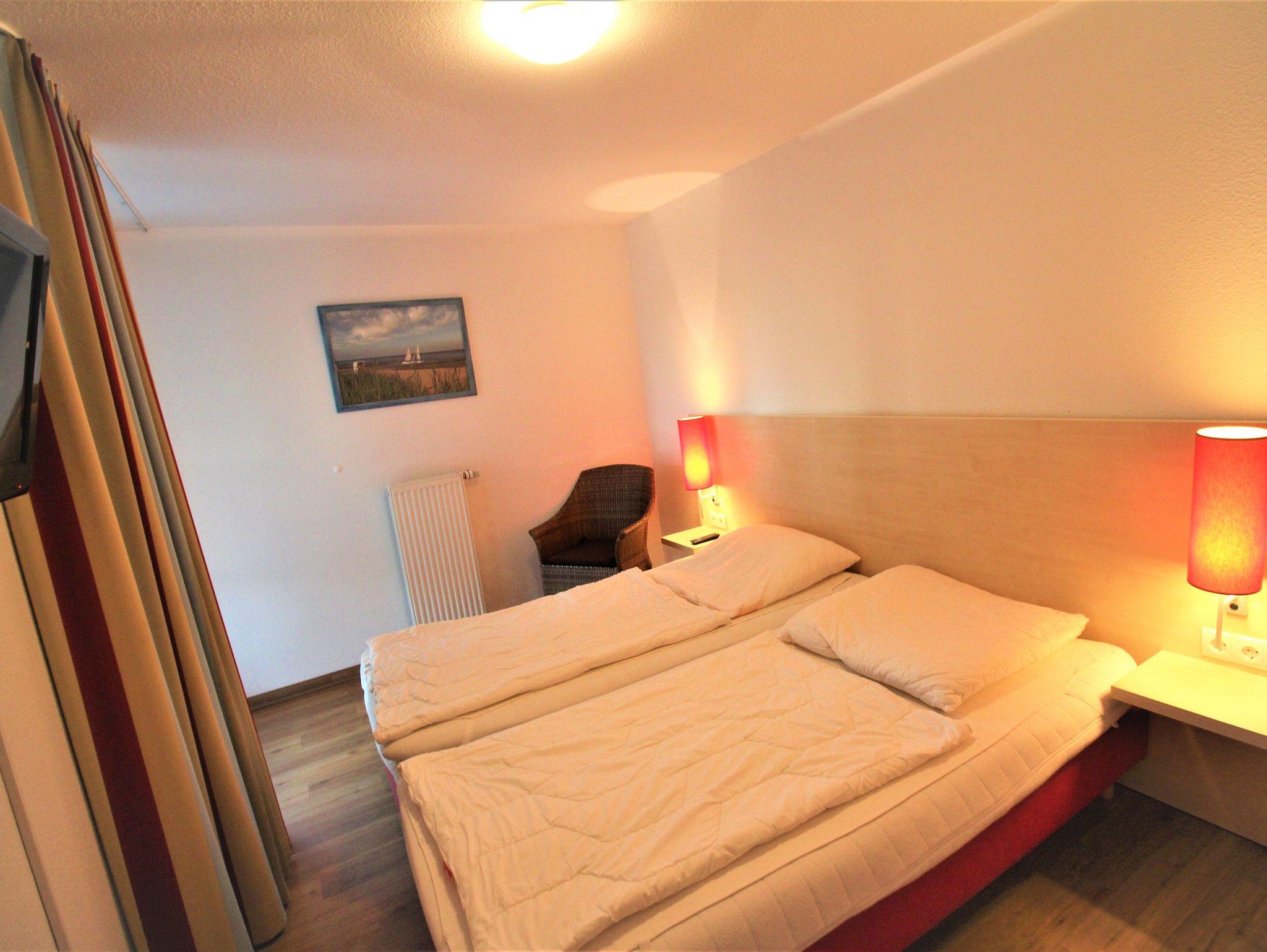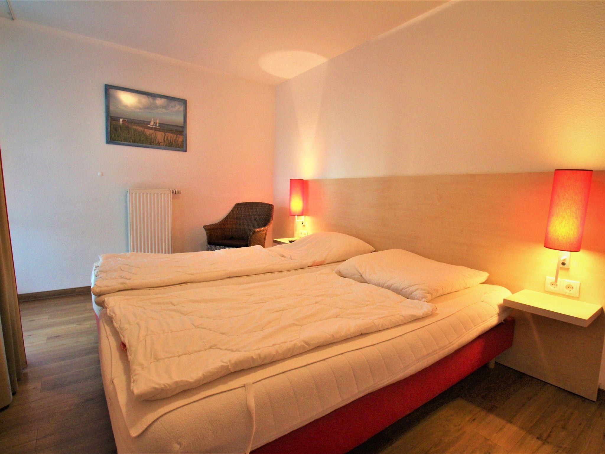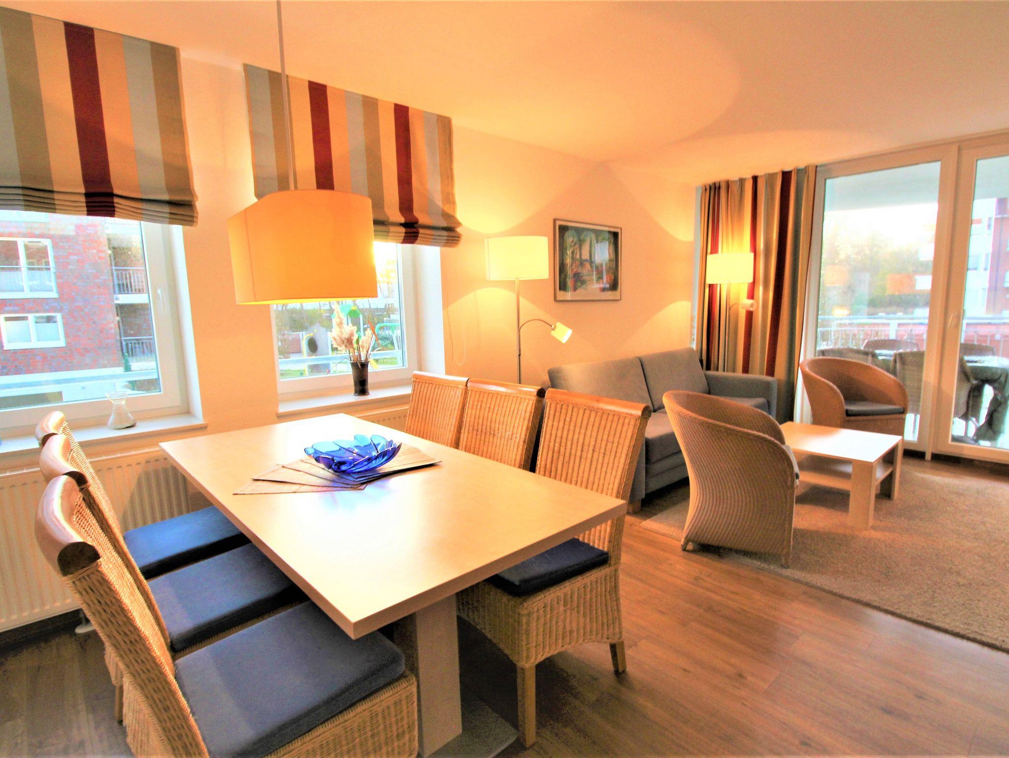 Sie wohnen in einem 3-Zimmer-Appartement für bis zu 6 Personen auf ca. 71 m² im Erdgeschoss. Die Wohnung verfügt über ein Schlafzimmer mit Doppelbett und Flachbild-TV, ein Schlafzimmer mit getrennten Betten und Flachbild-TV, einen großen, hellen Wohnraum mit bequemer Doppelbettcouch, SAT-TV Smart, einen separaten Essplatz, einen voll ausgestatteten Küchenbereich mit Geschirrspüler, Mikrowelle, Nespresso-Kapsel-Kaffeemaschine und Elektrogrill sowie ein Badezimmer mit Dusche/WC, ein separates Bad mit Badewanne/WC und einen großen, teilüberdachten Balkon zur Südwest-Seite.