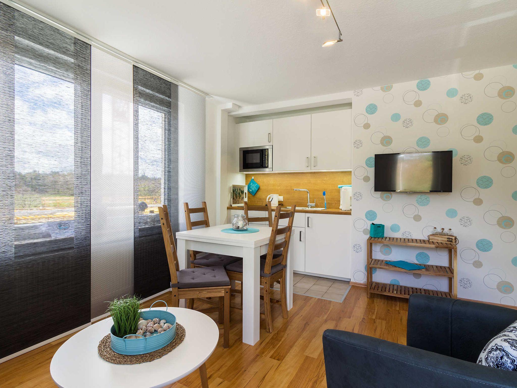 Unsere schöne Ferienwohnung Muschel befindet sich im ersten Obergeschoss und bietet Platz für vier Personen.