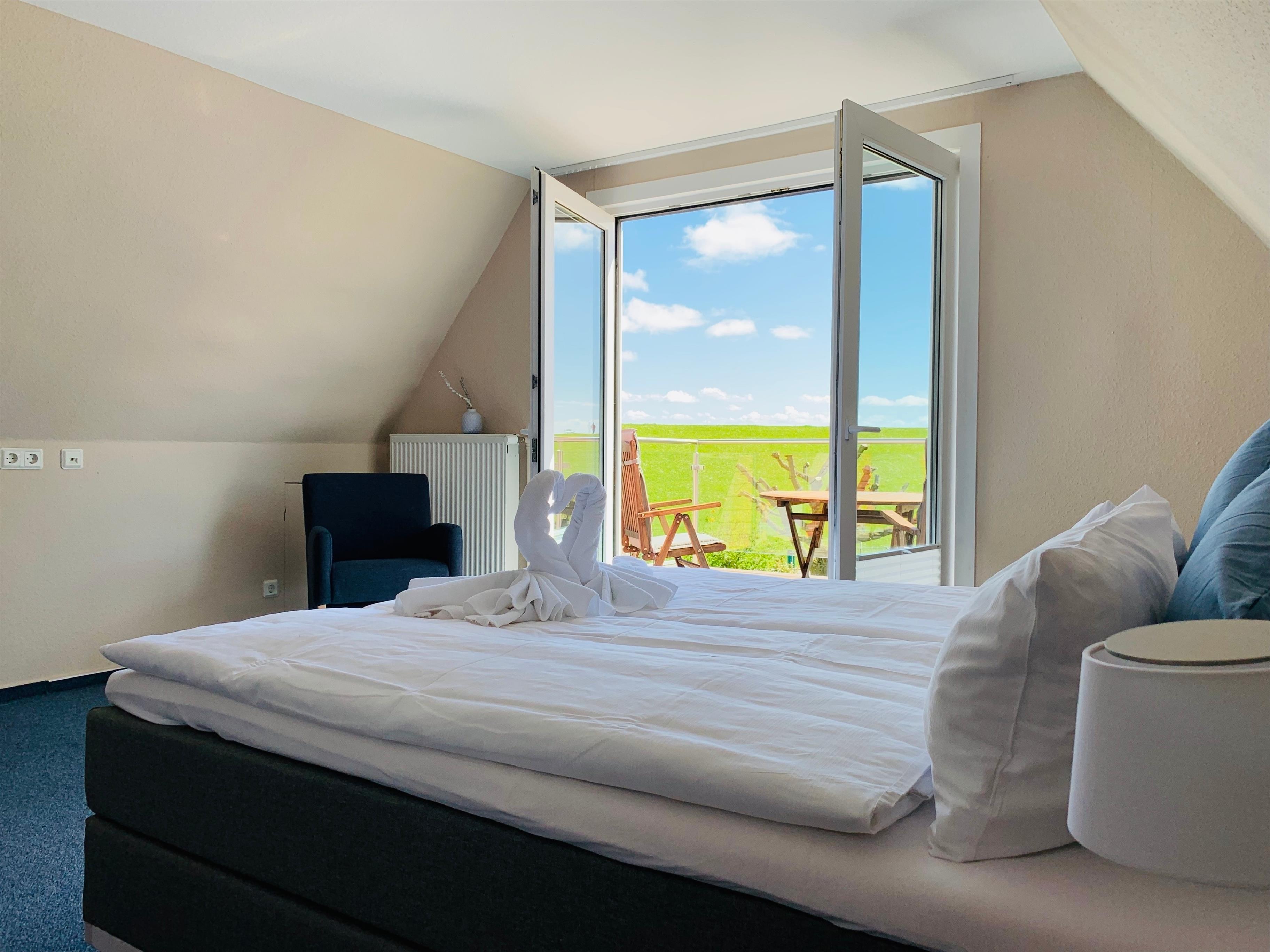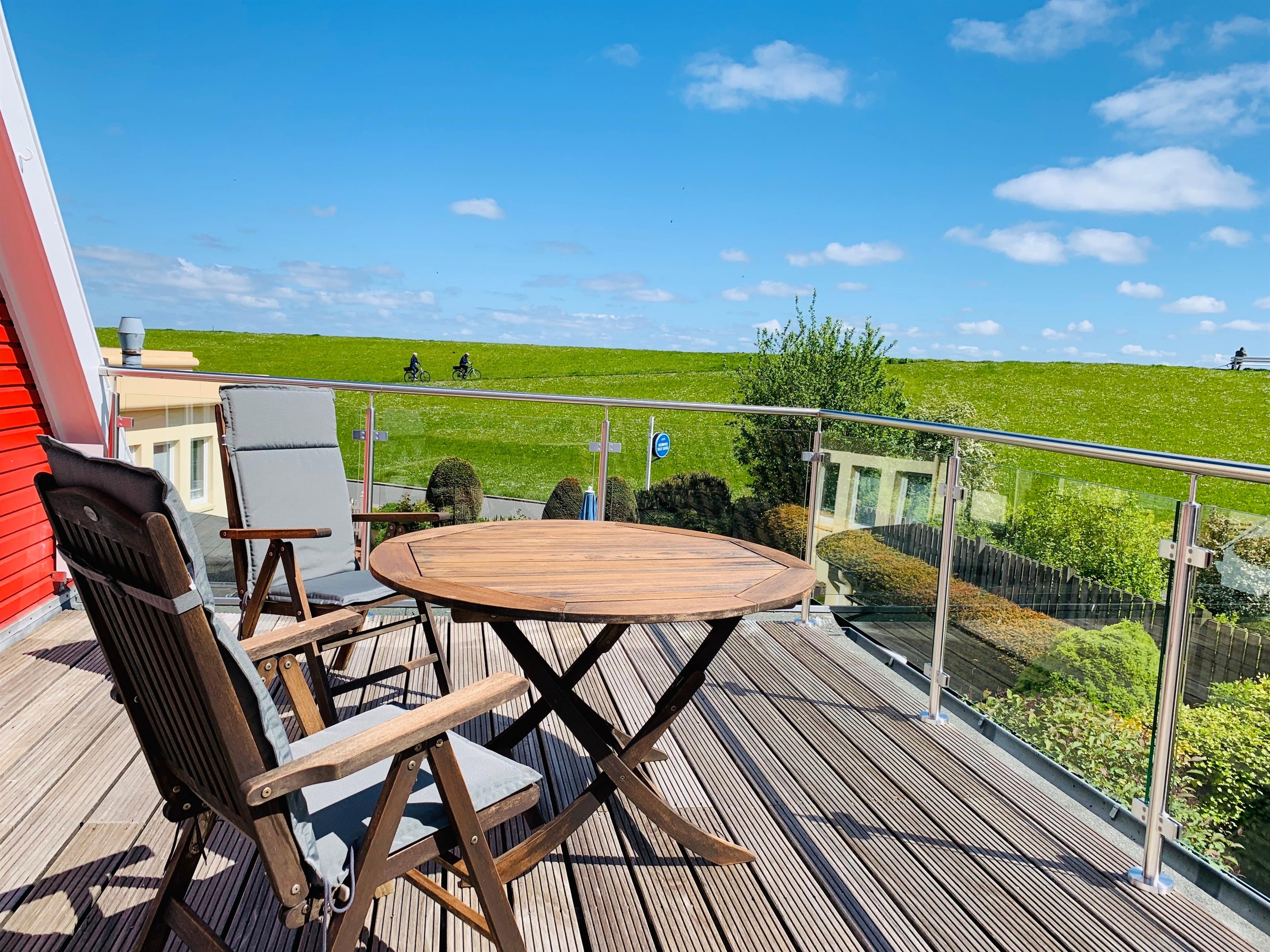 Das Highlight ist die großzügige Dachterrasse mit Blick auf den Deich, das Apartment ist perfekt für Paare.