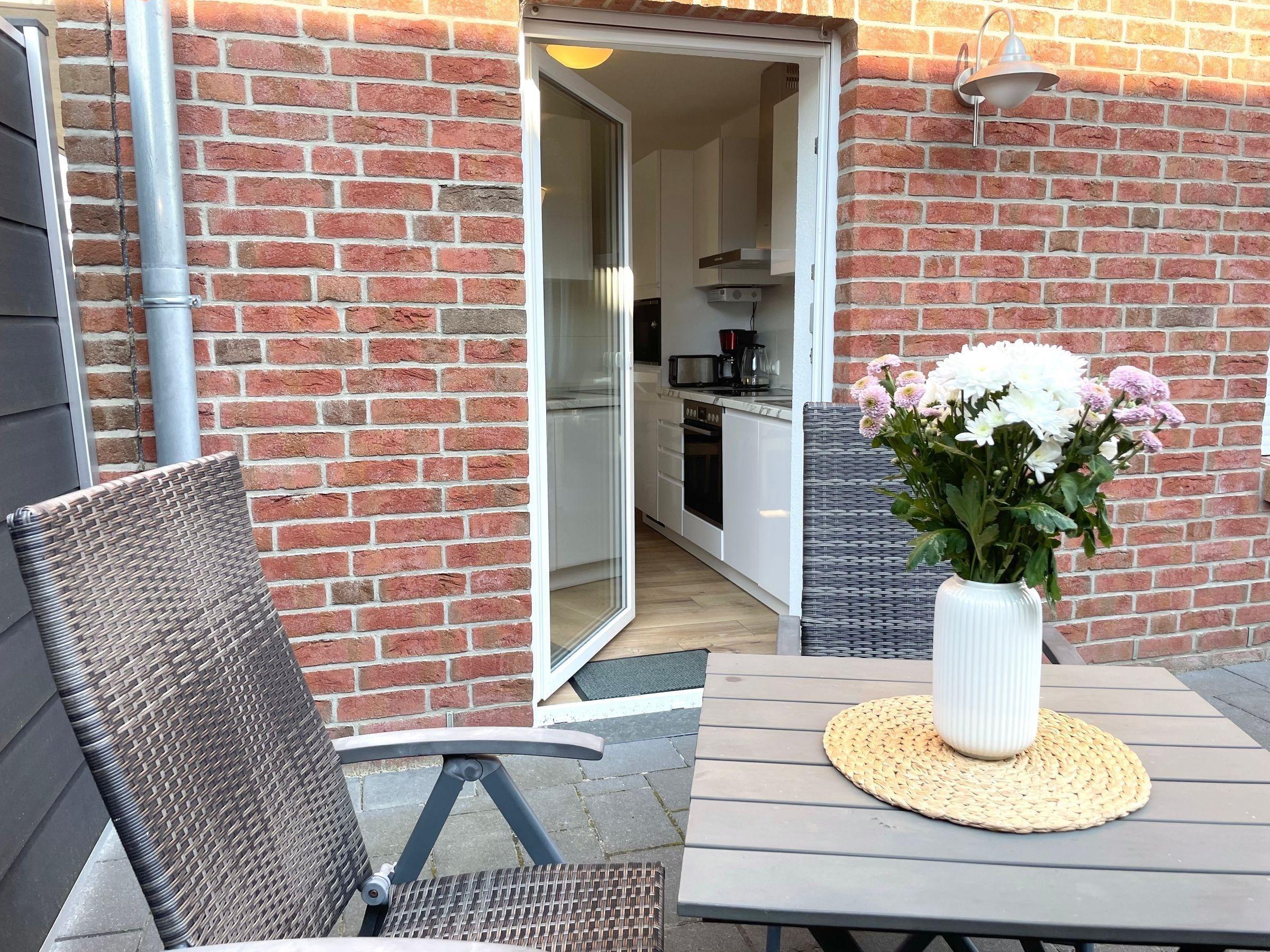 Diese moderne Ferienwohnung im nordischen Stil bietet Platz für bis zu vier Personen und befindet sich im Erdgeschoss. Sie ist hell und freundlich gestaltet und verfügt über ein Schlafzimmer sowie eine gemütliche Schlafcouch im Wohnzimmer. Im Schlafzimmer ist ein Flatscreen-TV vorhanden. Die offene Küchenzeile ist vollständig ausgestattet und beinhaltet einen Geschirrspüler, Induktionsherd, Mikrowelle, Backofen, Kaffeemaschine und Wasserkocher. Das Badezimmer ist rollstuhlfreundlich und verfügt über eine integrierte Regendusche. Zur Wohnung gehört eine eigene Terrasse mit Gartenmöbeln. Diese Ferienwohnung besticht durch ihren Komfort und die zentrale Lage, ideal für einen entspannten Aufenthalt in Cuxhaven.