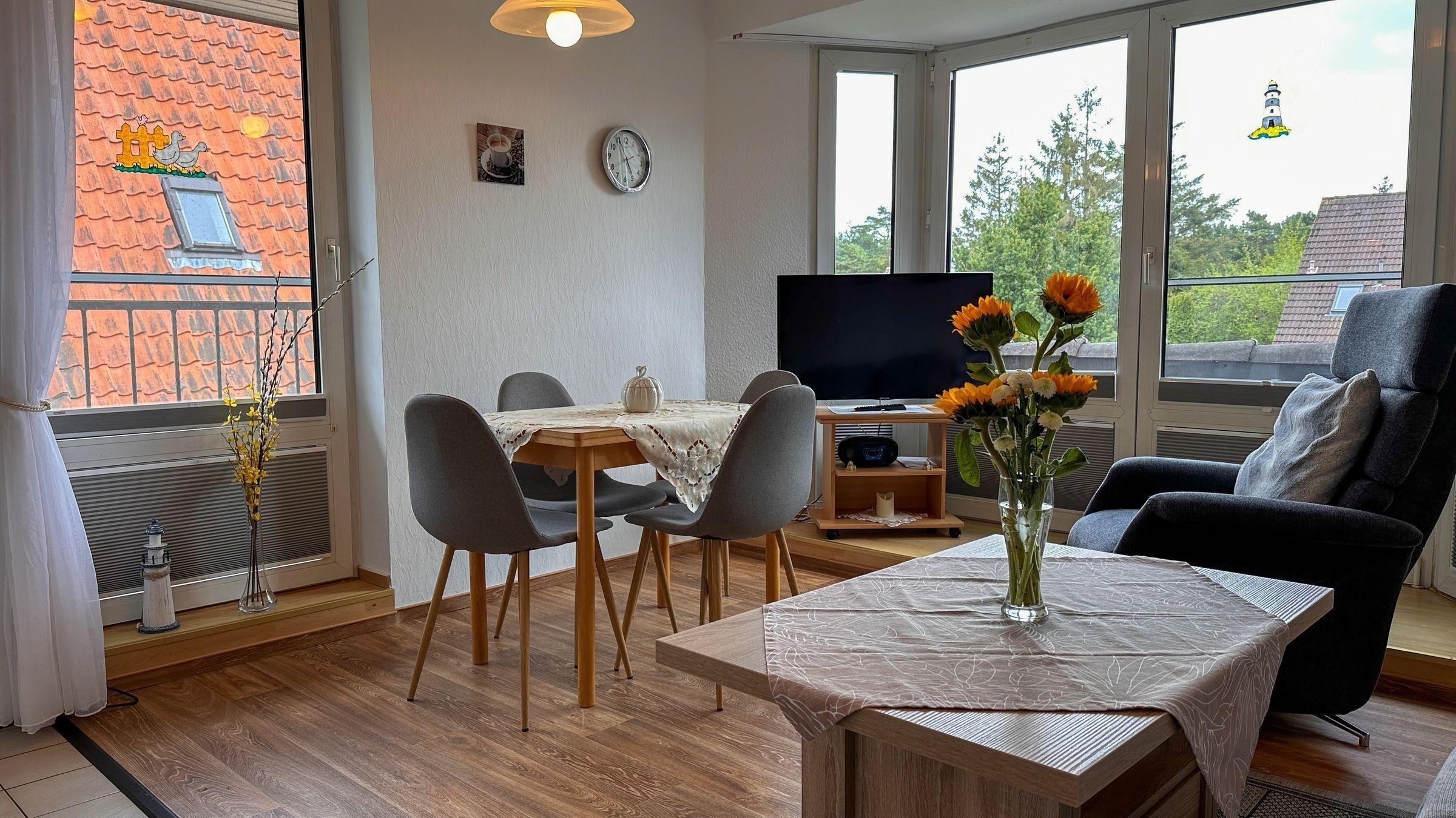 Die Ferienwohnung Nr. 10 in Cuxhaven bietet Platz für bis zu vier Personen, überzeugt mit einem Balkon, nur 700 m vom Strand entfernt und ideal für entspannte Tage an der Nordsee.