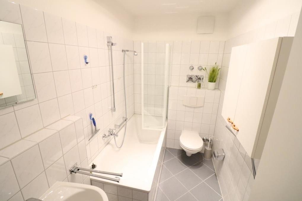 Gemütliche Ferienwohnung mit einem Schlafraum mit einem Doppelbett (davon 1 Bett mit verstellbarem Lattenrost), ein Wohnraum mit Küchenzeile mit Backofen, Mikrowelle und Kühlschrank, Bad / WC, TV
