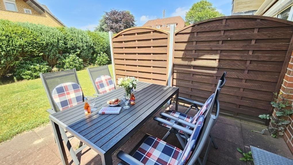 Hübsche, strandnahe Ferienwohnung über zwei Etagen mit einladender Westterrasse und Garten. Ideal geeignet für bis zu vier Personen - auf Anfrage gerne auch mit kleinem Hund! Mit kostenfreiem WLAN und Stellplatz.
