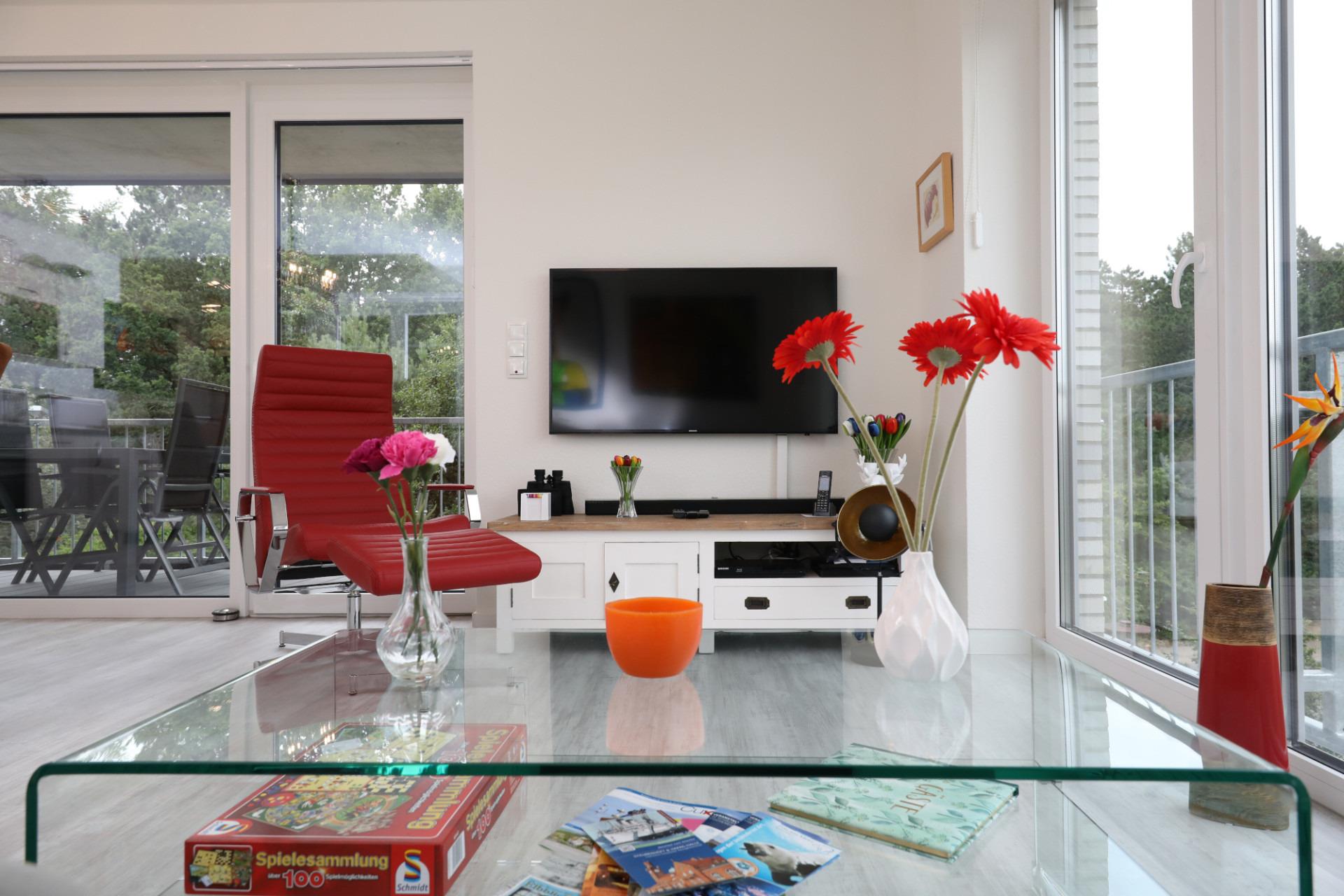 Genießen Sie Ihren Urlaub und die Vorzüge dieser 76 m² großen Neubauwohnung. Ein gemeinsames Frühstück auf dem Balkon ist der perfekte Start in den Tag. Die hochwertige und überdurchschnittlich ausgestattete Küche inklusive Kochutensilien und Fischbesteck, sowie der geräumige Wohn- und Essbereich lassen keine Wünsche offen. Abends können Sie in Ihrer eigenen Sauna entspannen, oder Sie lassen den Tag bei einem Glas Wein in der gemütlichen Sitzecke ausklingen.