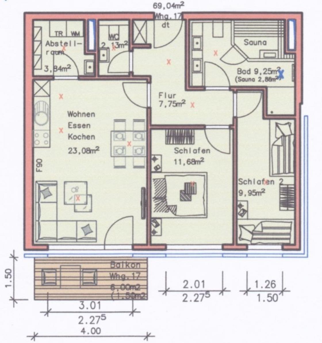 Kaution von € 150,- bekommen Sie den jeweiligen Schlüssel für den