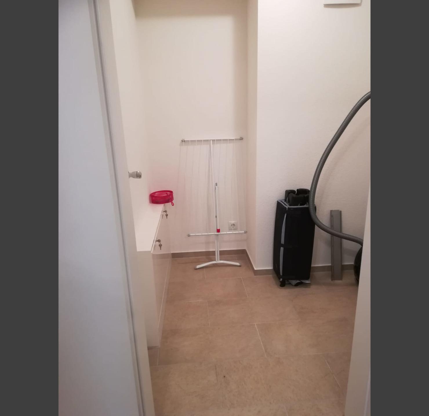 Im Abstellraum steht ein Fahrrad zum "Brötchen holen" bereit.