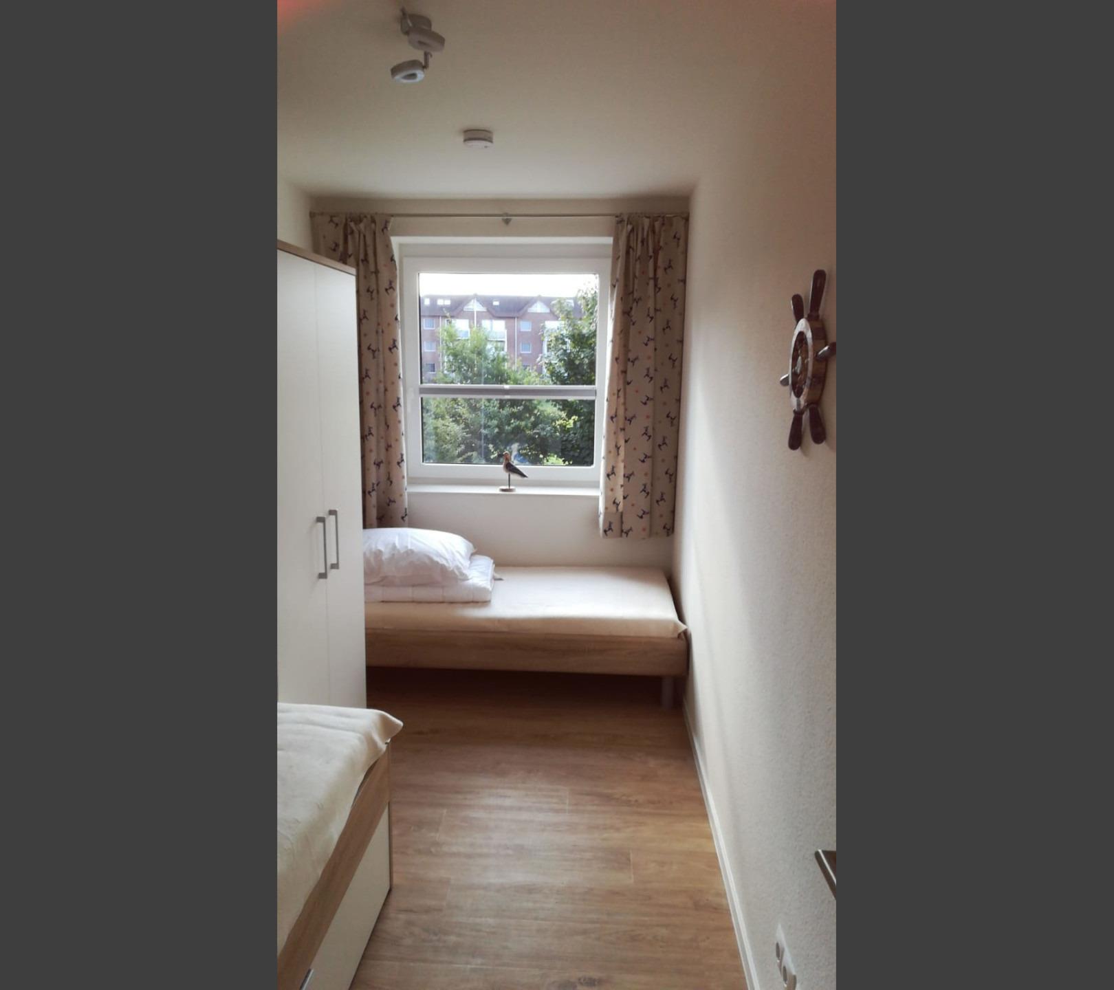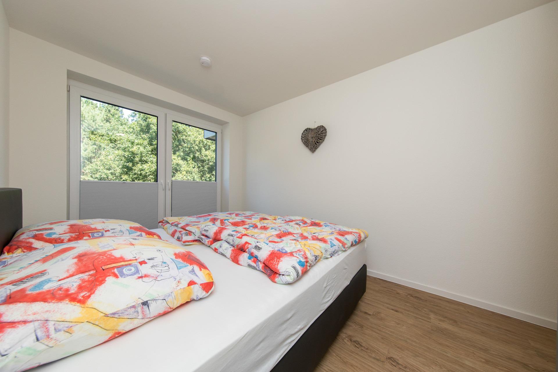 Eines der Schlafzimmer ist mit einem gemütlichen Boxspringbett (180 x 200) ausgestattet und verfügt zudem über ein Babyreisebett. Im zweiten Schlafzimmer finden Sie zwei Einzelbetten.