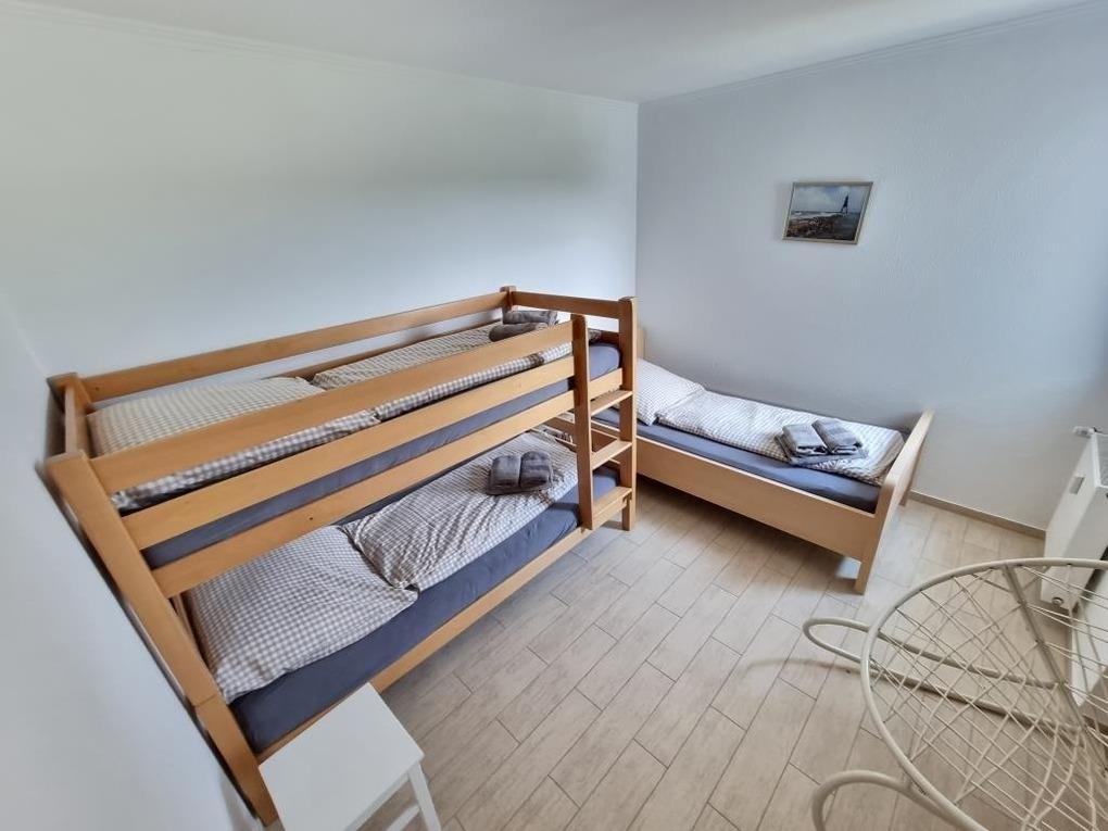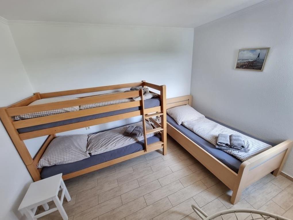 Gemütliche Ferienwohnung im Haus Frische Brise mit einem Schlafraum mit einem Doppelbett 1,80mx2m, einem Schlafraum mit einem Etagenbett und einem Einzelbett, einem Wohnraum mit Balkon, separate Küche mit Küchenzeile, Backofen, Geschirrspüler, Mikrowelle und Gefrierfach, Dusche / WC, WLAN kostenlos, Parkplätze am Haus vorhanden, ca. 200m vom Sahlenburger Sandstrand entfernt.