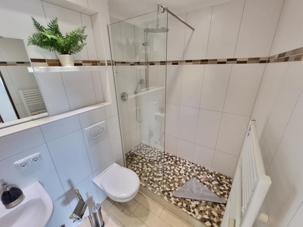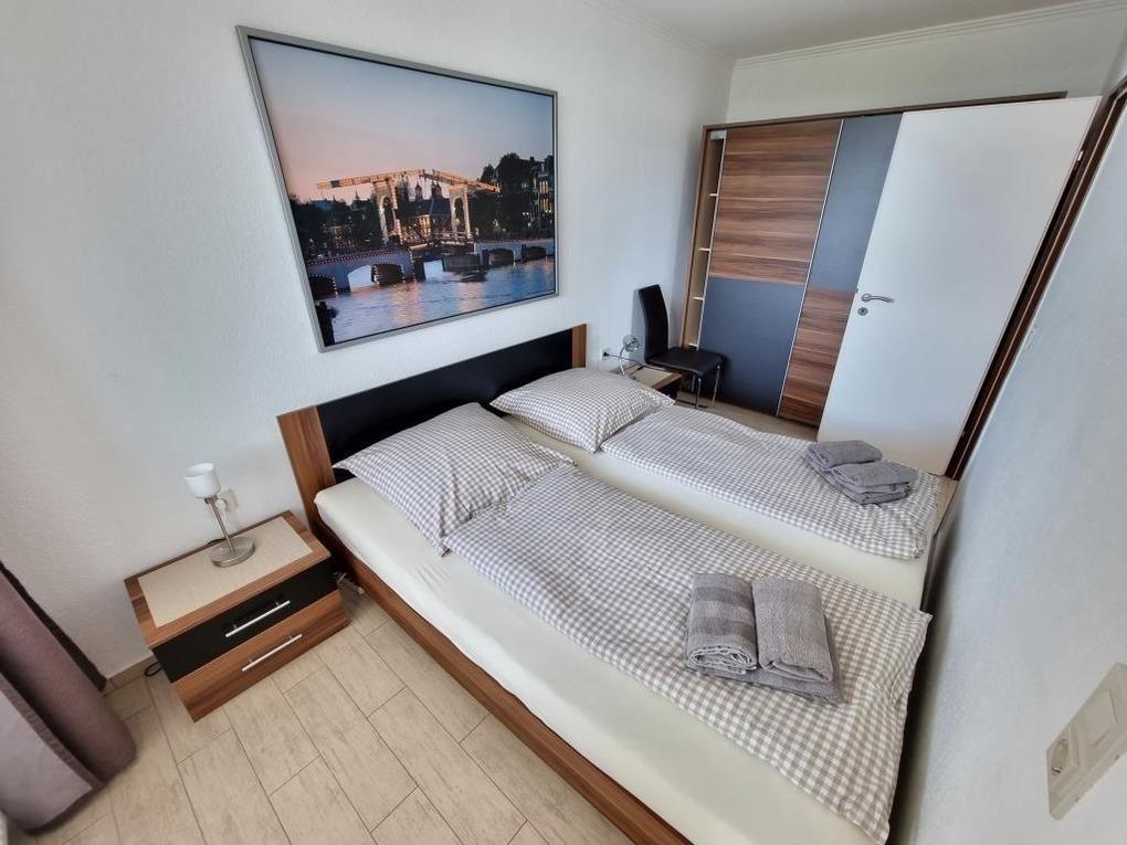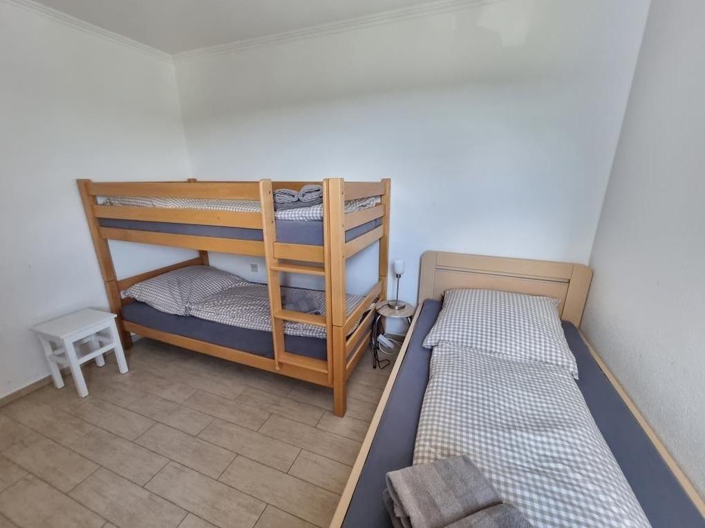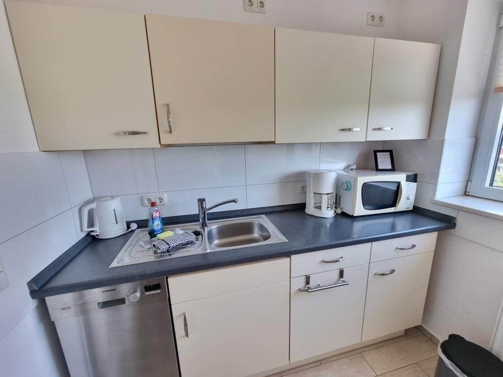 Gemütliche Ferienwohnung im Haus Frische Brise mit einem Schlafraum mit einem Doppelbett 1,80mx2m, einem Schlafraum mit einem Etagenbett und einem Einzelbett, einem Wohnraum mit Balkon, separate Küche mit Küchenzeile, Backofen, Geschirrspüler, Mikrowelle und Gefrierfach, Dusche / WC, WLAN kostenlos.