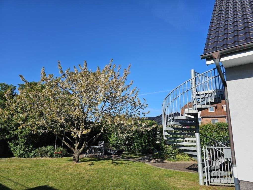 Der schöne Garten hinter dem Haus steht Ihnen während Ihres Aufenthaltes zur alleinigen Nutzung zur Verfügung. Einfach entspannen, ein schönes Buch lesen oder gemeinsam im Garten essen. Genießen Sie es bei uns. Gelangen Sie direkt von der Küche über die Außentreppe in den schönen Garten.