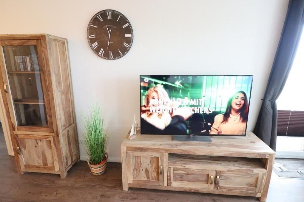 Vom gemütlichen Sofa können Sie den Blick auf das Wasser genießen, wenn es denn da ist. Ein TV für einen entspannten TV-Abend ist vorhanden. Das WLAN darf von unseren Gästen kostenlos genutzt werden.