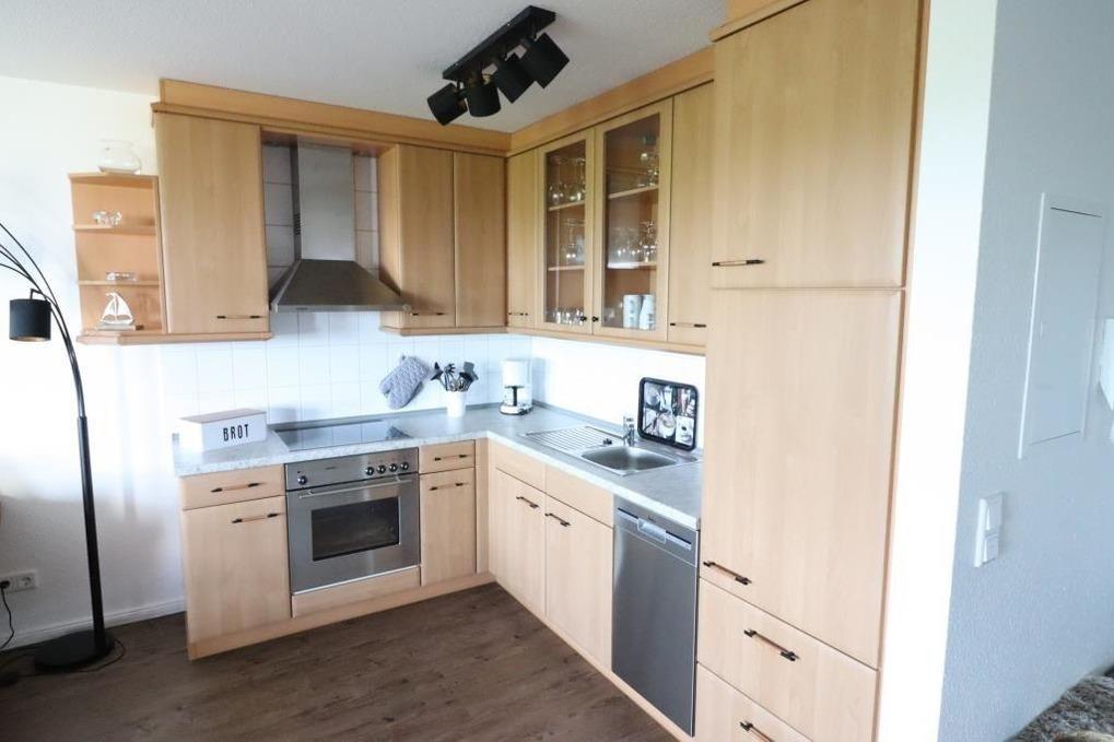 Im Wohnraum steht Ihnen eine Küchenzeile zur Verfügung um auch im Urlaub kulinarische Köstlichkeiten zuzubreiten, falls Sie dies möchten. Ausgestattet mit Geschirrspüler, Backofen, Ceranfeld und Gefrierfach ist alles vorhanden, was man benötigt.