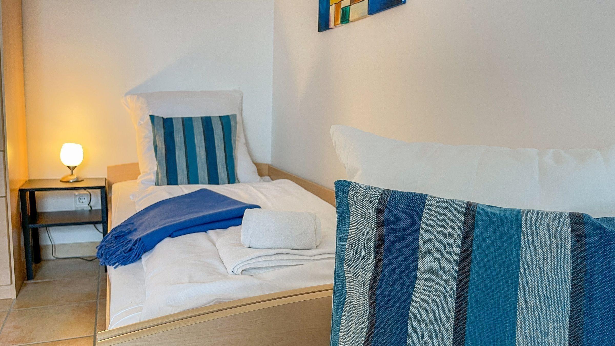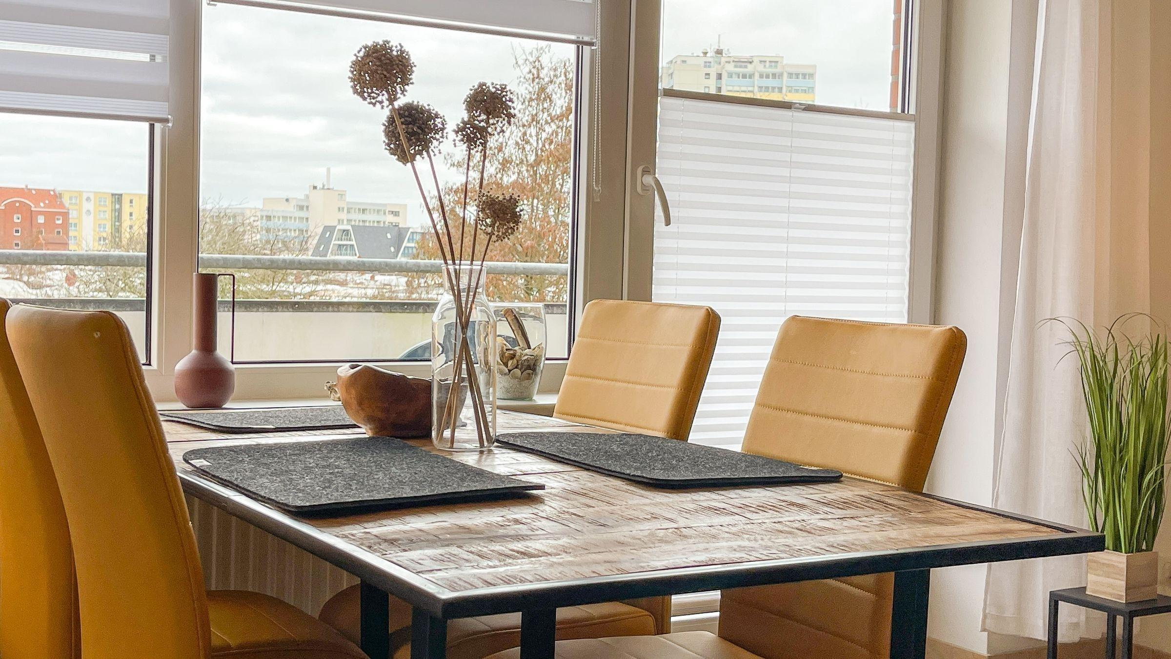 Die Ferienwohnung im Waldbad Westwind, gelegen in der ersten Etage, bietet auf 50 qm Platz für bis zu 6 Personen. Sie verfügt über zwei separate Schlafzimmer, eines mit einem Doppelbett und das andere mit zwei Einzelbetten. Das Wohnzimmer ist ausgestattet mit einem Esstisch und einer Schlafcouch (160x200), die zusätzlichen Schlafplatz bietet. Eine gut ausgestattete Küche und ein Badezimmer mit Dusche runden das Angebot ab. Die Fenster sind mit Fliegengittern versehen, und in einem der Schlafzimmer ist ein zusätzlicher Smart-TV vorhanden. Zur gemeinschaftlichen Nutzung stehen eine Waschmaschine und ein Trockner im Keller bereit. Fahrräder können im ebenerdig gelegenen Fahrradkeller untergestellt werden. Ein kostenfreier Parkplatz ist direkt vor der Unterkunft verfügbar. Hunde sind auf Anfrage willkommen.