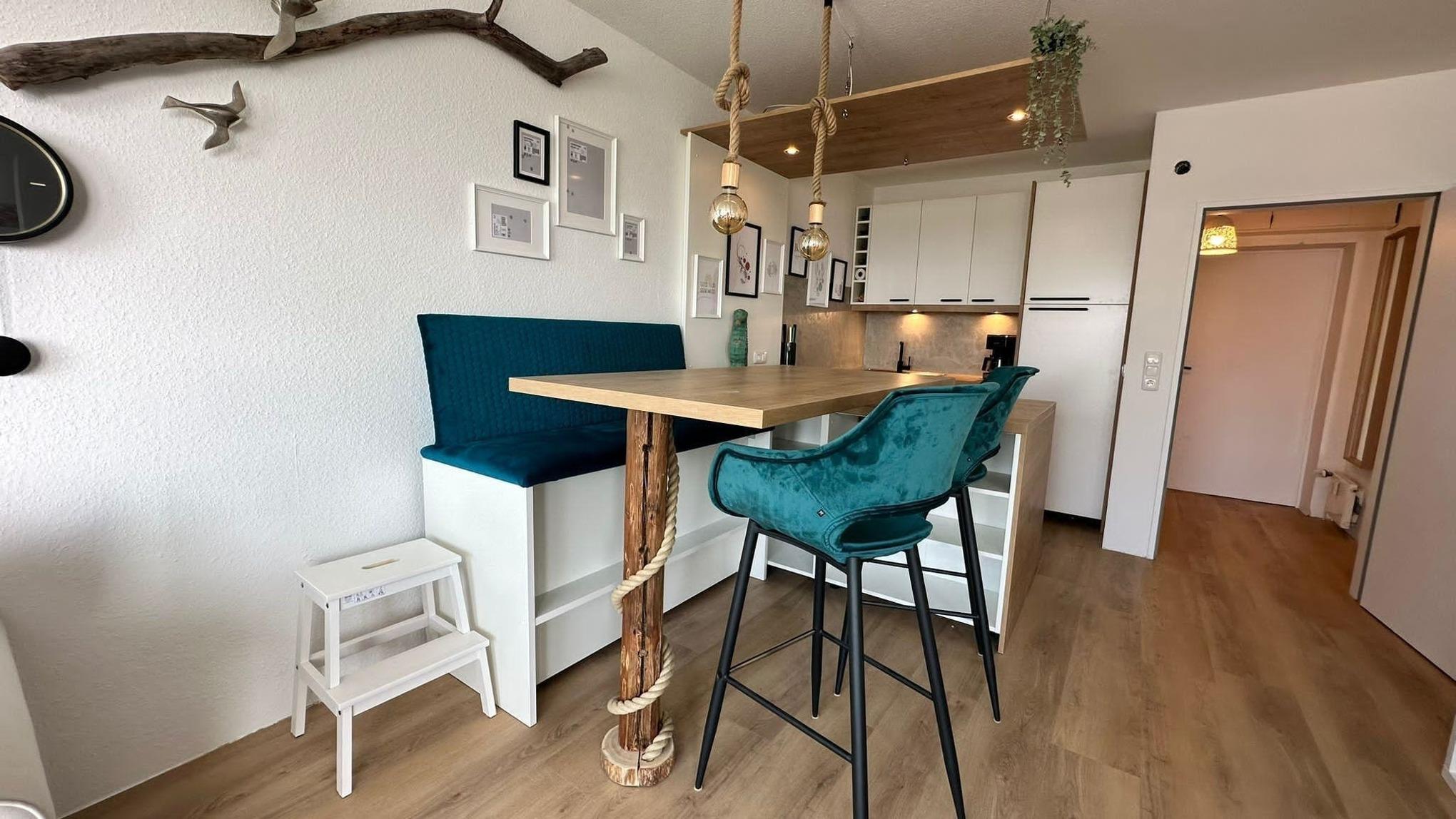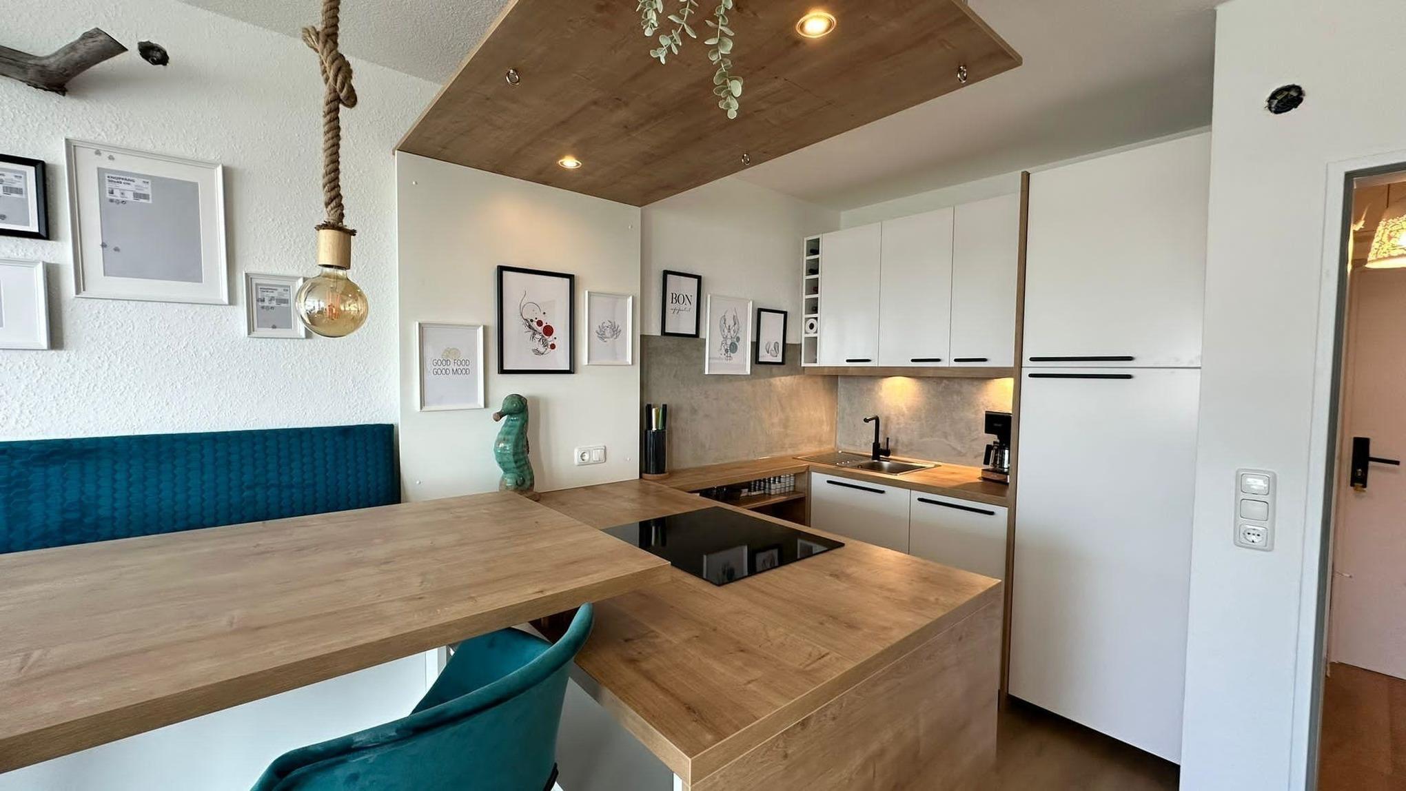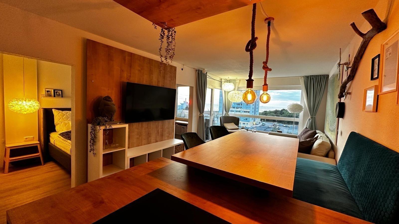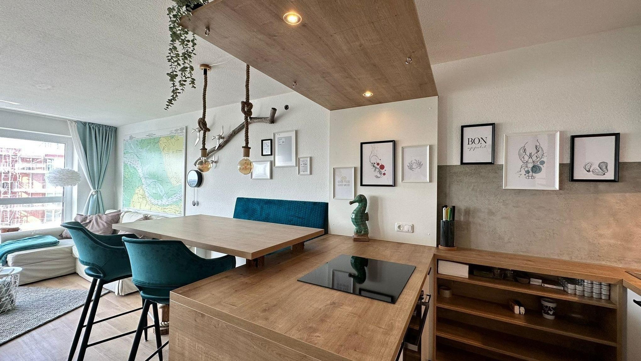 Die frisch sanierte Ferienwohnung 53°Nord besticht durch ihren offenen Wohn- und Essbereich, der hell und lichtdurchflutet ist. Von hier aus genießen die Gäste einen prachtvollen Blick auf das Sahlenburger Wattenmeer und die Insel Neuwerk. Der Wohnbereich ist stilvoll eingerichtet und verfügt über ein ausziehbares Schlafsofa (1,40 x 2 m) sowie einen 55 Zoll Smart TV. Der etwas erhöhte Essbereich mit angrenzender Kücheninsel lädt zum gemeinsamen Kochen und Essen ein. Das separate Schlafzimmer ist mit einem 1,80 x 2 m großen Doppelbett, ausreichend Stauraum und einem 43 Zoll Smart TV ausgestattet. Das 2023 renovierte Duschbad rundet die hochwertigen Ausstattung ab. Die Wohnung bietet Platz für bis zu 4 Personen. Kostenlose Parkmöglichkeiten sind direkt vor dem Haus verfügbar. Ein saisonal geöffnetes Schwimmbad kann ebenfalls genutzt werden, ist jedoch gemeinschaftlich nutzbar. Hunde sind herzlich willkommen.